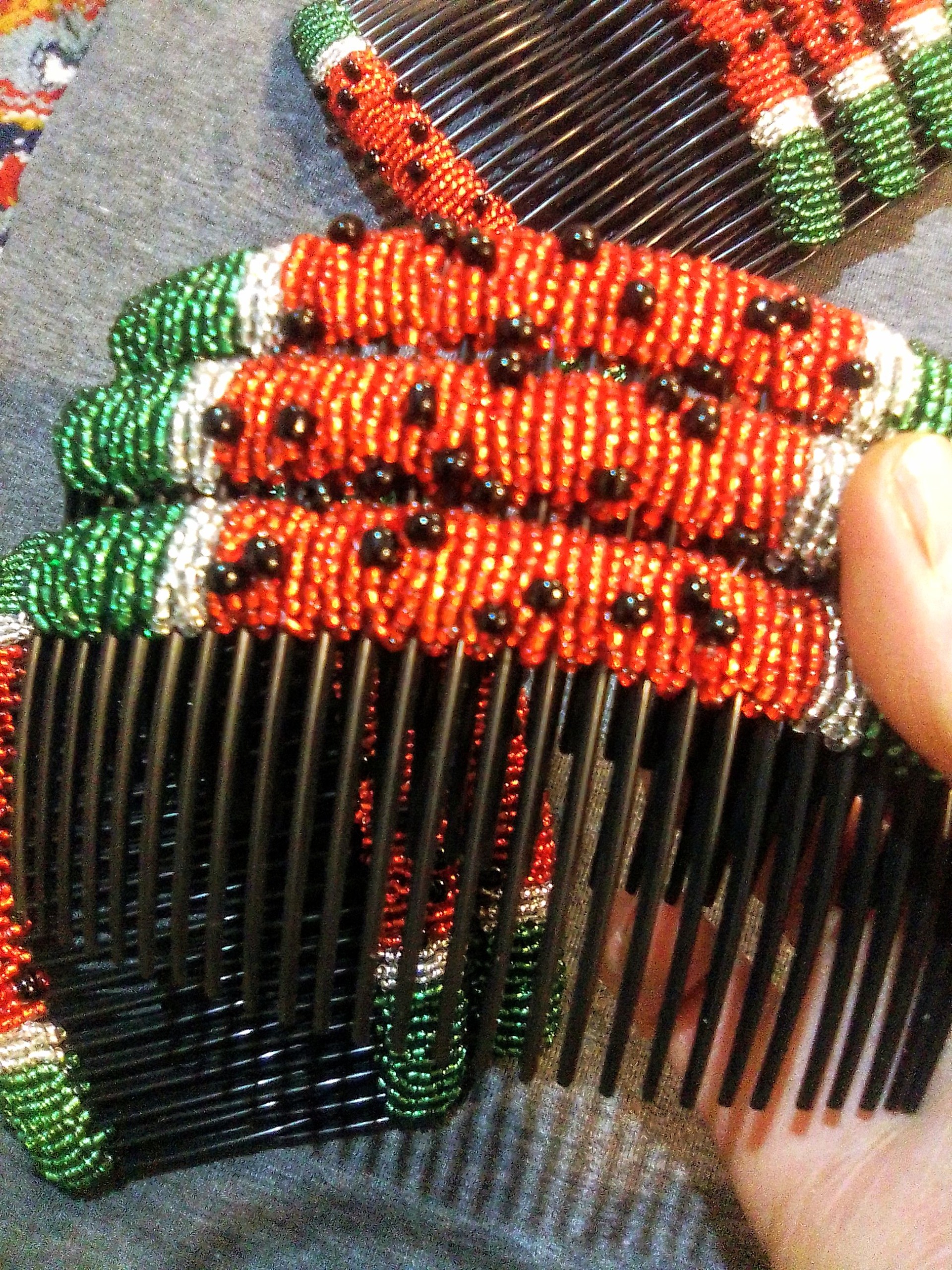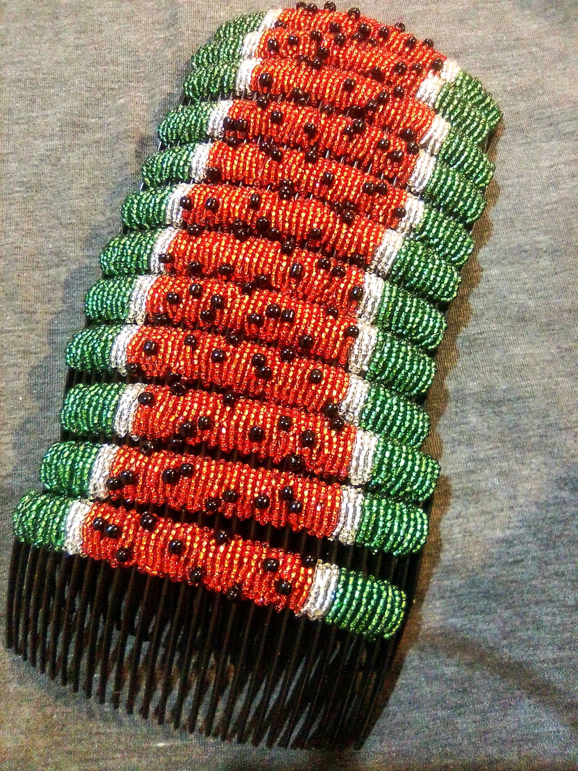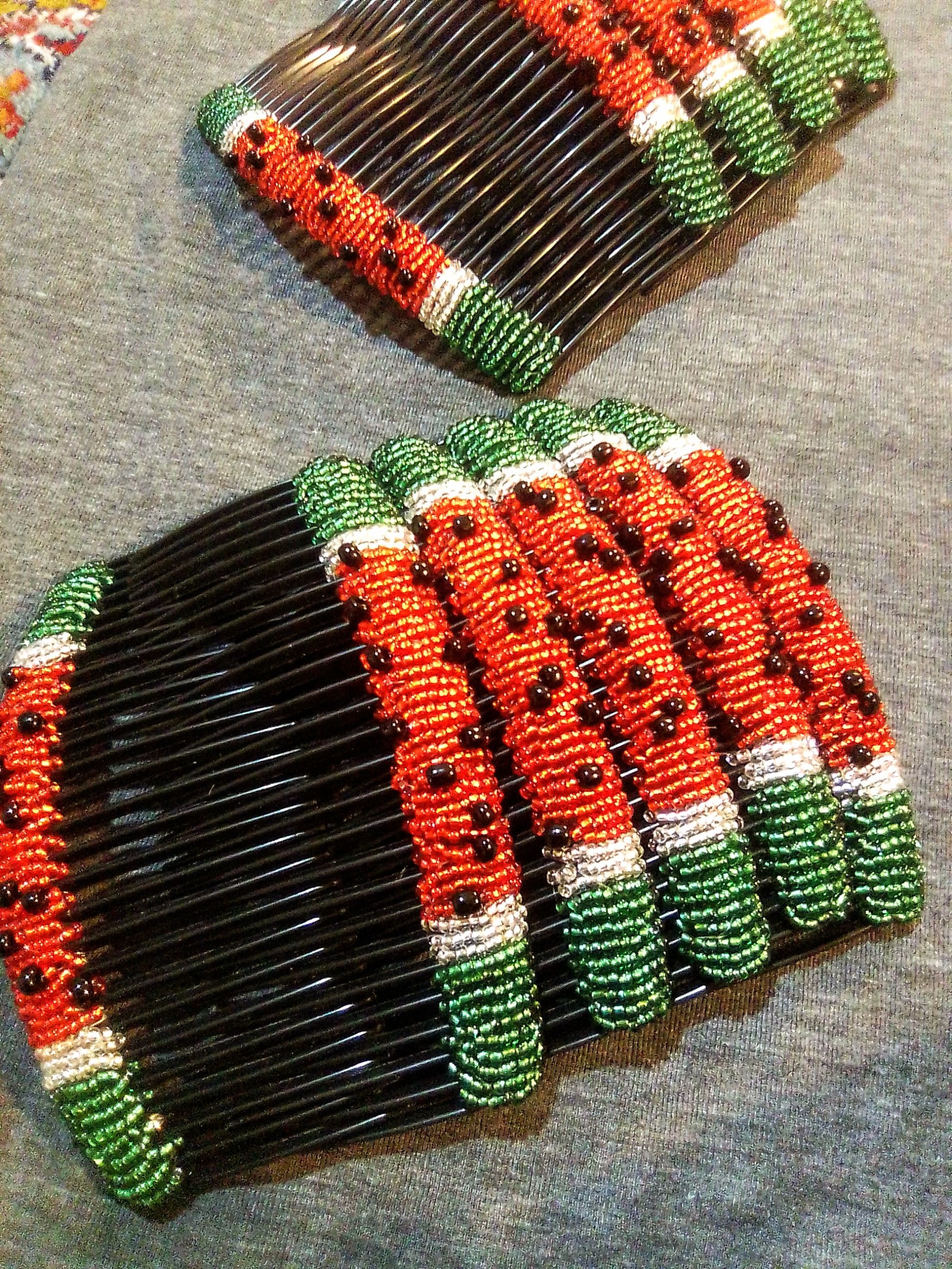 شانه سر منجوق دوزی طرح هندوانه یلدایی (2عددی)