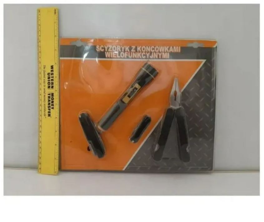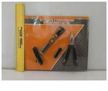 ست ابزار همه کاره همراه با چراغ قوه و چاقوی بزرگ و کوچک جیبی و یک انبر دست