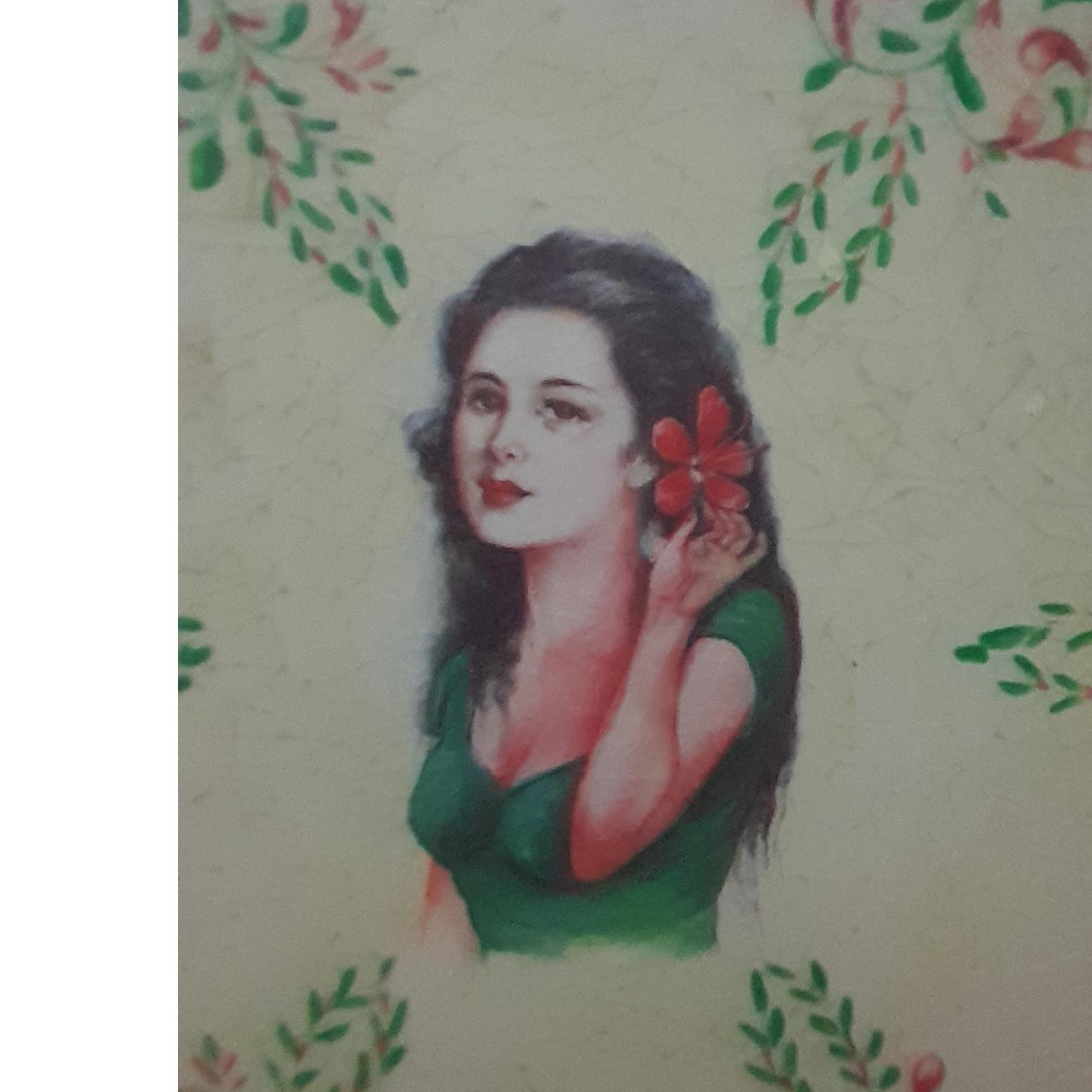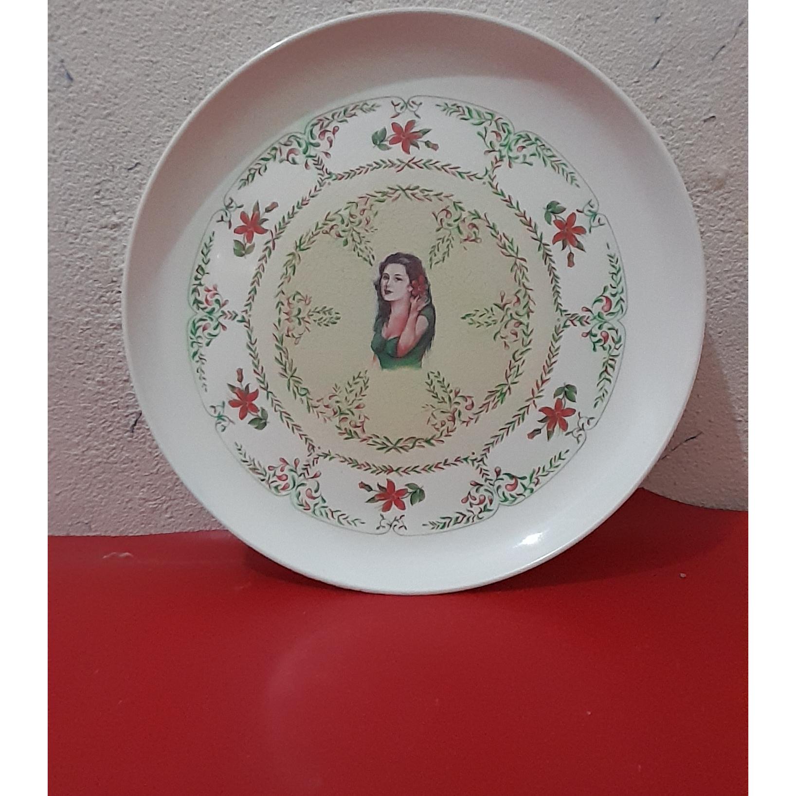 دیس گرد ملامین طرح دخترزیبا با پیراهن سبز