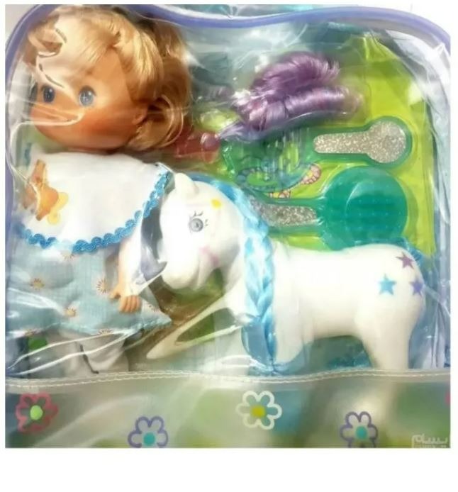 عروسک بسیار زیبا به همراه پونی و تجهیزات درون کیف