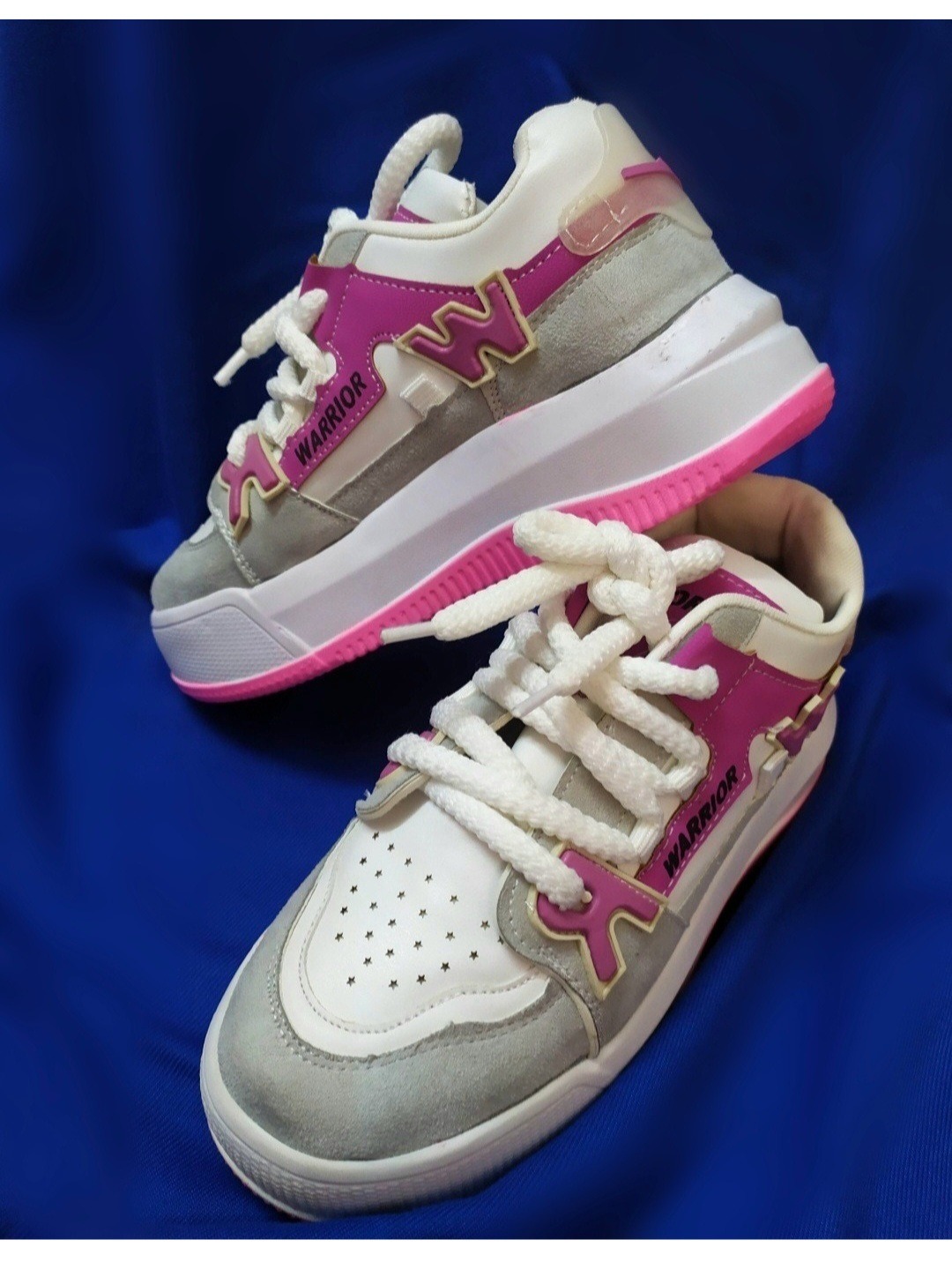 کفش کتونی دخترانه شیک رنگی اسپرت سرخابی طوسی جنس نرم وراحت با بهترین تخفیف فصل