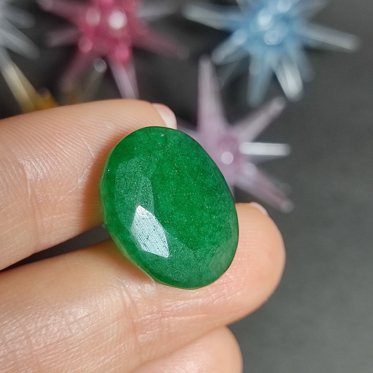 نگین سنگ جید زمردی معدنی رگه دراگونی کد10114