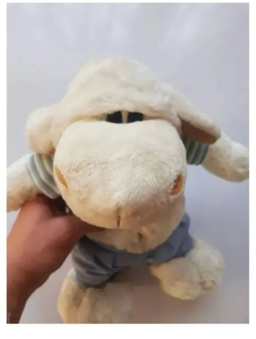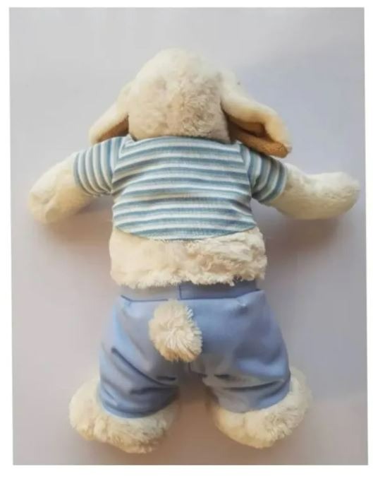 عروسک پشمالو پارچه ای مخملی گاوی با لباس و شلوار پارچه ای