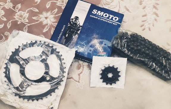 پک کامل زنجیر موتور 150 cc باکسر به همراه 2 عدد خورشیدی بزرگ و خورشیدی کوچک