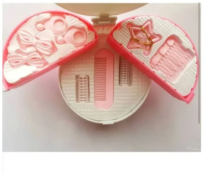 لوازم: شانه، گردنبند، گل سر، 2 عدد گیره مو، 2 عدد گوشواره، 2 عدد بیگودی سر، همراه با آیینه