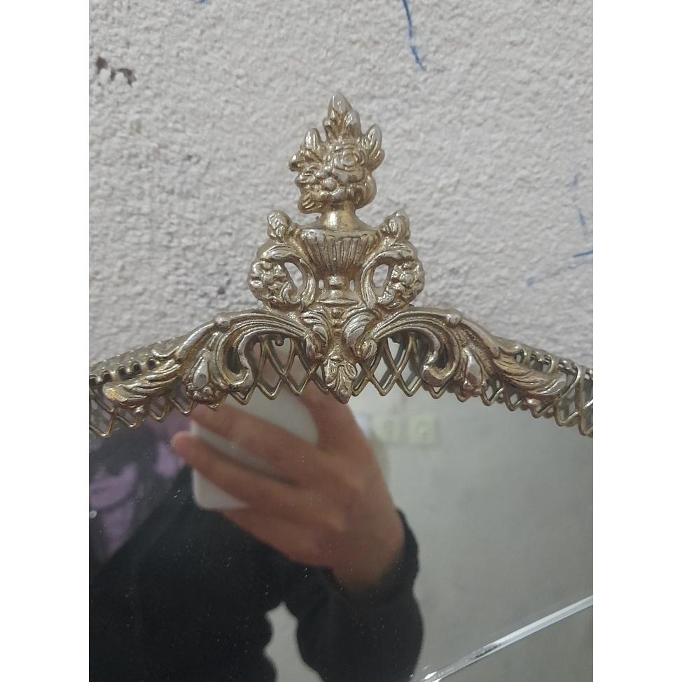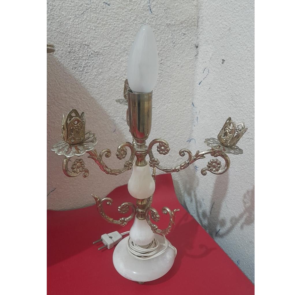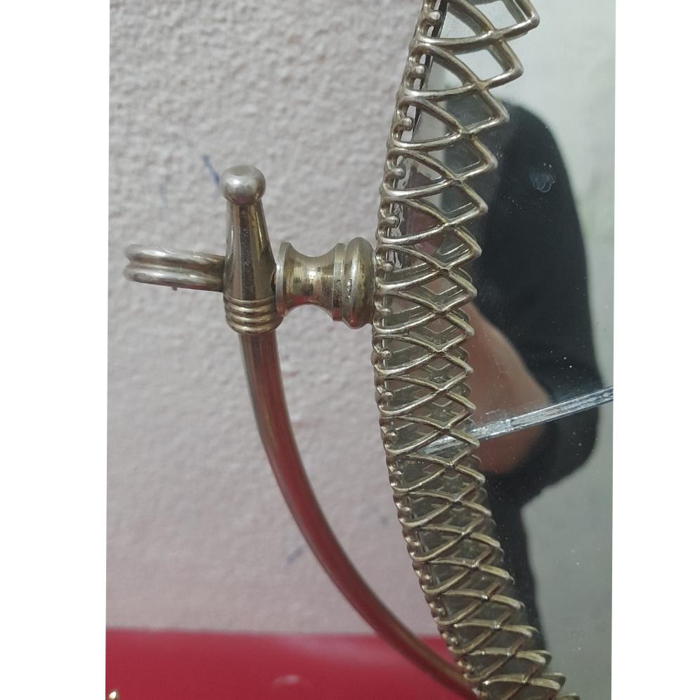 قاب آینه برنجی قدیمی به همراه یک جفت شمعدان برنجی با پایه مرمر