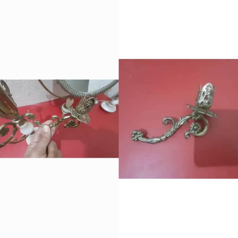 قاب آینه وشمعدان قدیمی برنجی.توضیحات