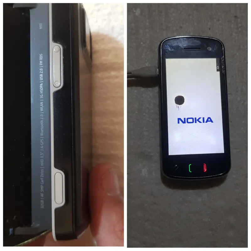 Noki N97_1 گوشی صحیح و سالم فقط و فقط روی ال سی دی یک دایره مشکی افتاده و دوتا لکه سفید توی تصاویر کاملا مشخصه ،باتری هم خوب و قابل قبوله تمام