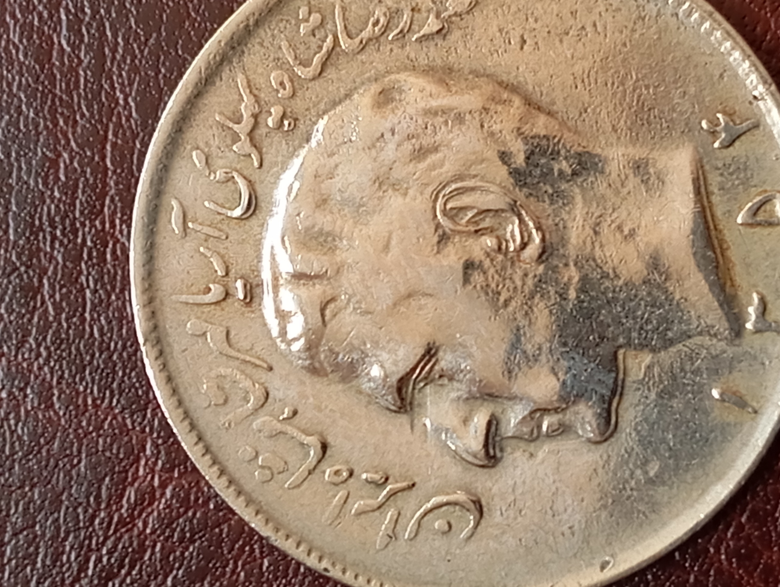 سکه20 ریال ارور ضرب مکرر پشت سکه 1354