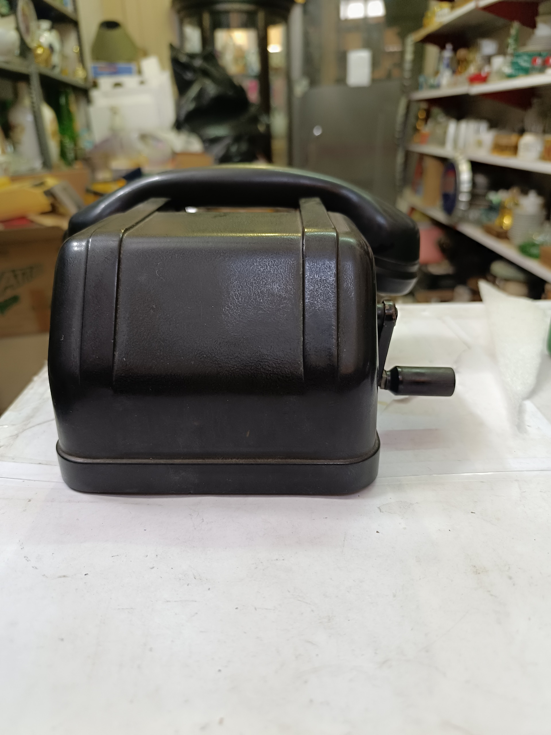 تلفن هندلی قدیمی ، از اولین تلفن های وارد شده به ایران ، یه کار کلکسیونی ، دوستانی که میپرسند آیا کار میکنه یا نه ؟ باید در پاسخ گفت که این کار مربوط به دوره ای بوده که تنها 50 - 100 تلفن در طهران قدیم وجود داشته و شخص با برداشتن گوشی و چرخاندن هندل کنار گوشی به شخص تلفنچی وصل می شده و میگفته که تلفن رو به چه کسی وصل کنه و تلفنچی هم یک فیش اتصال رو فیش خط طرف مورد نظر وصل می کرده. این یه کار تقریباً برای 100 سال پیشه.