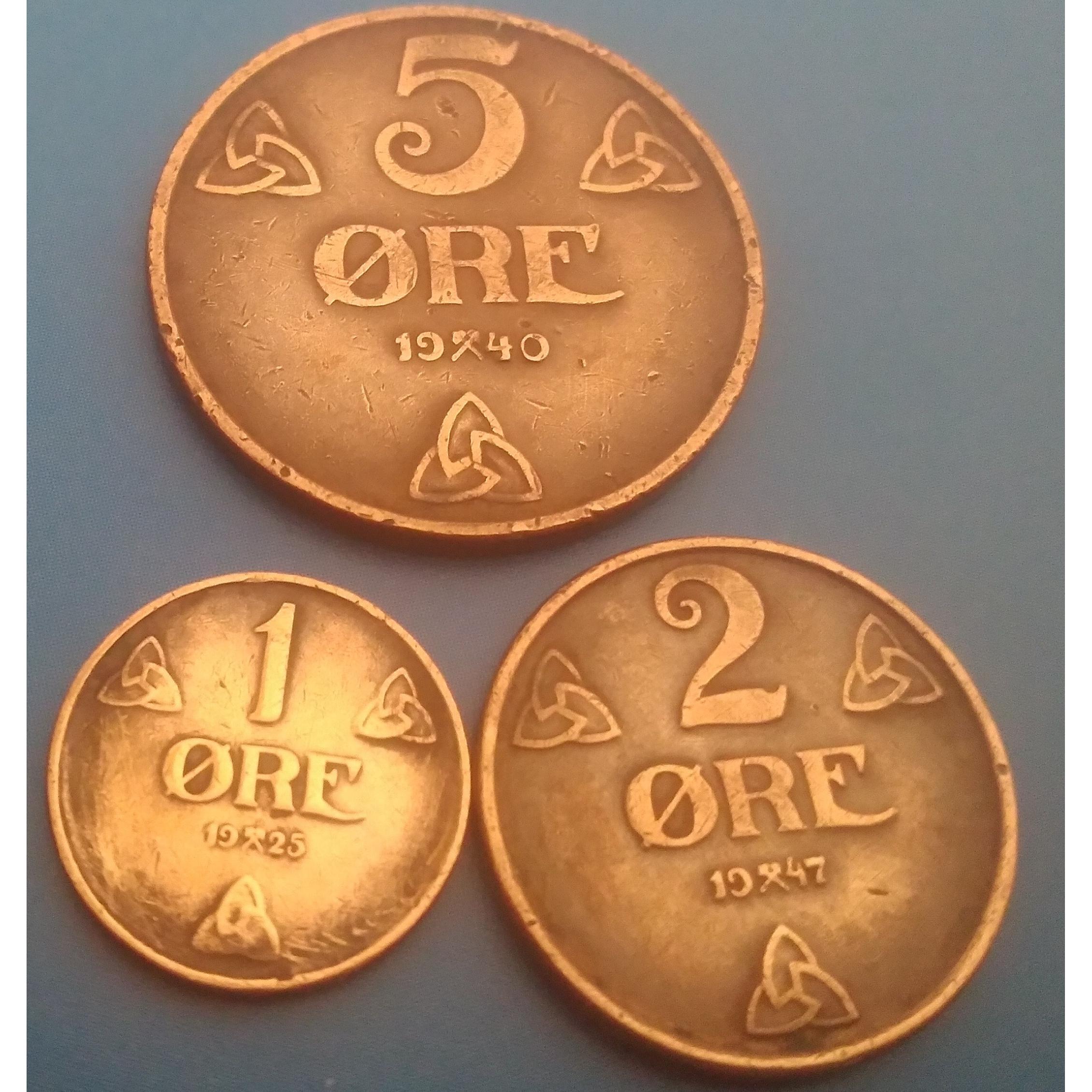 سلام دوست عزیز،سکه ها متعلق به دوران هاکون هفتم پادشاه نروژ می باشد وسکه ها عبارتنداز: