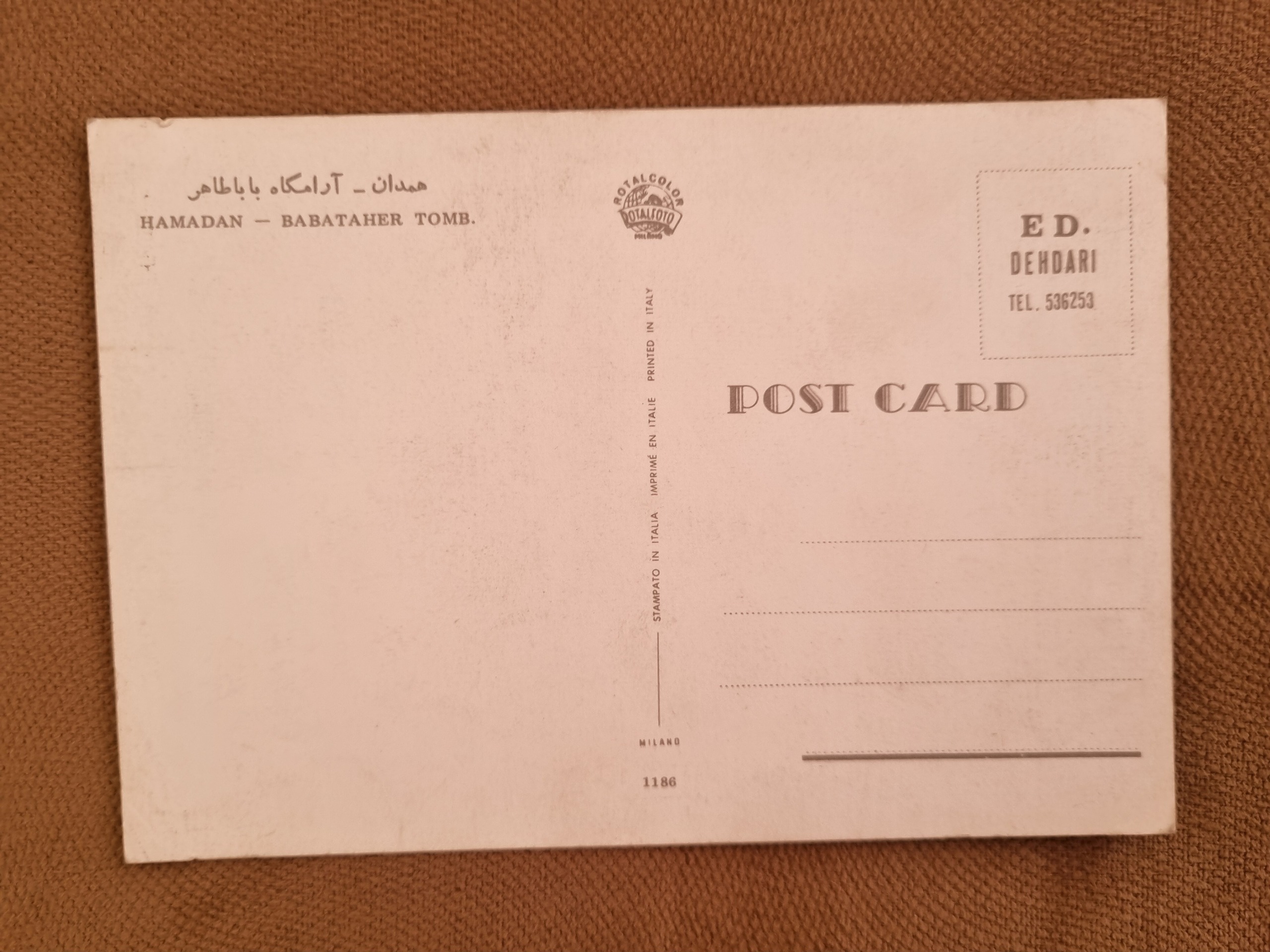 تصویر این کارت پستال از آرامگاه بابا طاهر در همدان میباشد.
