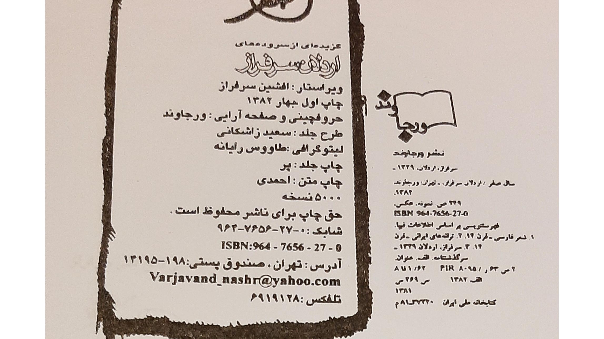 گزیده سروده های اردلان سرفراز ، نشر ورجاوند 1382