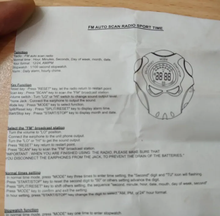 کرنومتر ورزشی گردنی دارای ساعت و زنگ و رادیو و هنسفری البته هنسفری گوشی موبایل هم کار میکنه با صدای قوی و گوش نواز با سه تا باتری جی 13 یکسال کار میکنه به شدت کم مصرف و با کیفیت نو نو در بسته بندی مخصوص خودش با کاتالوگ