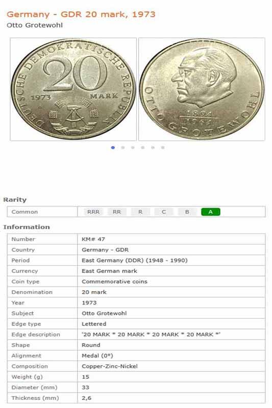 سکه یادبودی 20 مارک آلمان شرقی 1973 (نایاب) 15 گرم