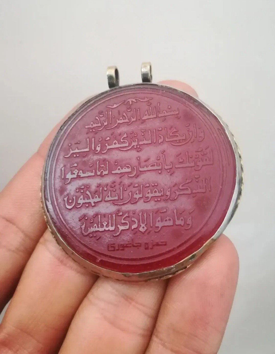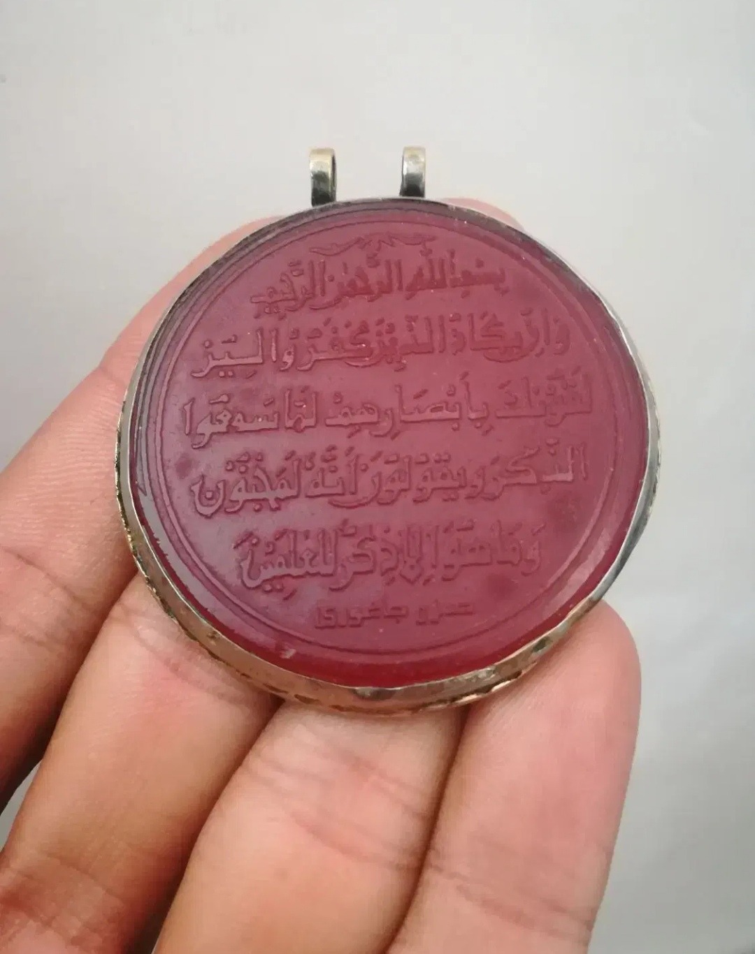 گردن آویز قدیمی عقیق سرخ خط استاد جاغوری