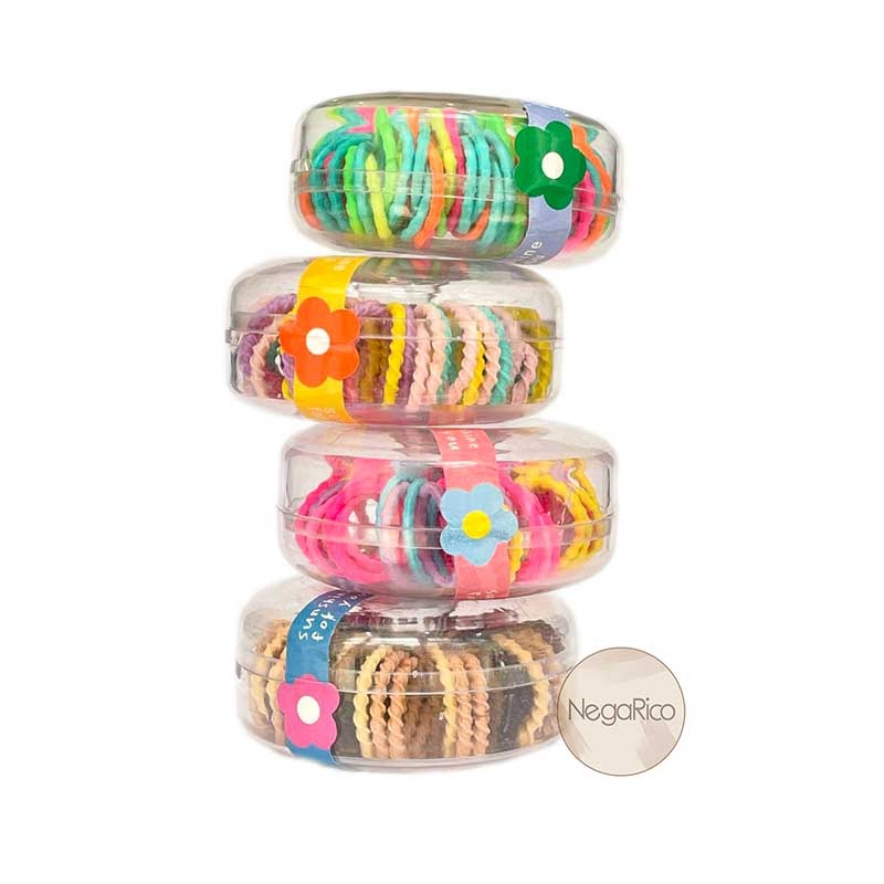 این کش موها در یک جعبه دوناتی هست که برای بچه ها خیلی جذابه وجنس کش ها خیلی بادوام وباکیفیت هست.تعداد کش ها 60 عدد هست . رنگ کش ها در چند رنگ مختلف و کاربردی که با هر لباسی میتونید ست کنید .