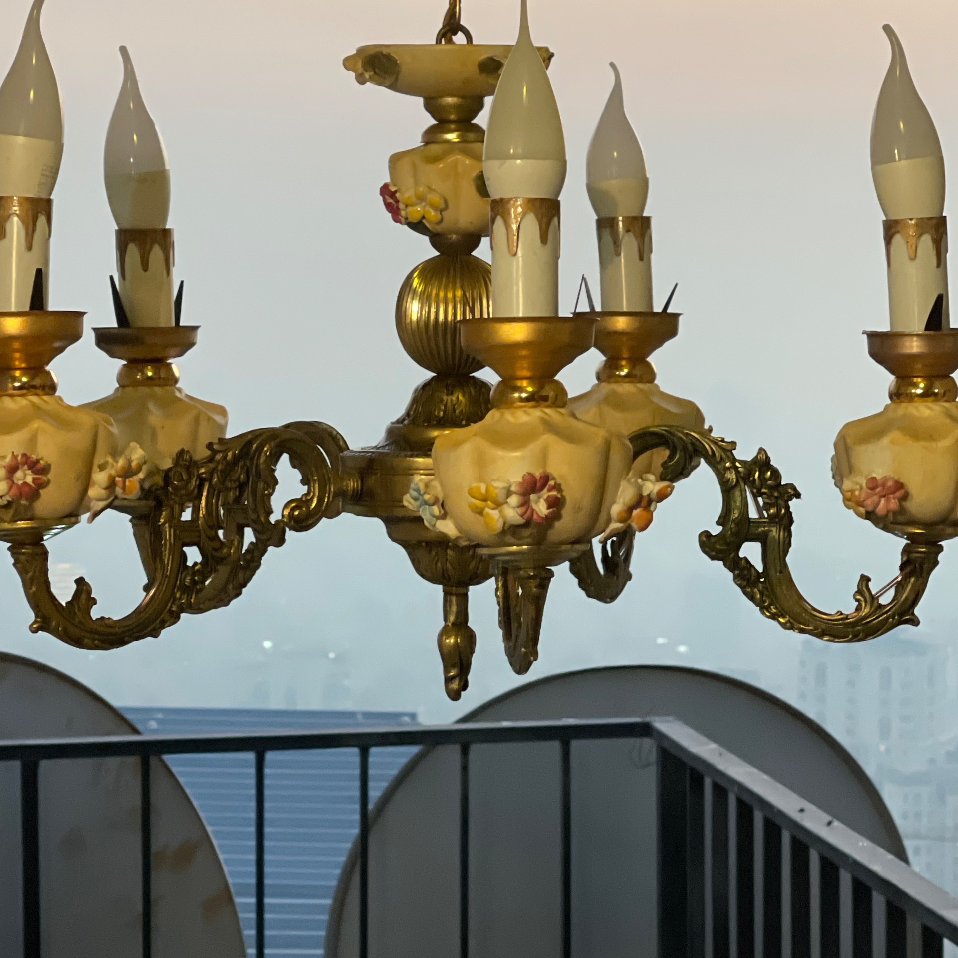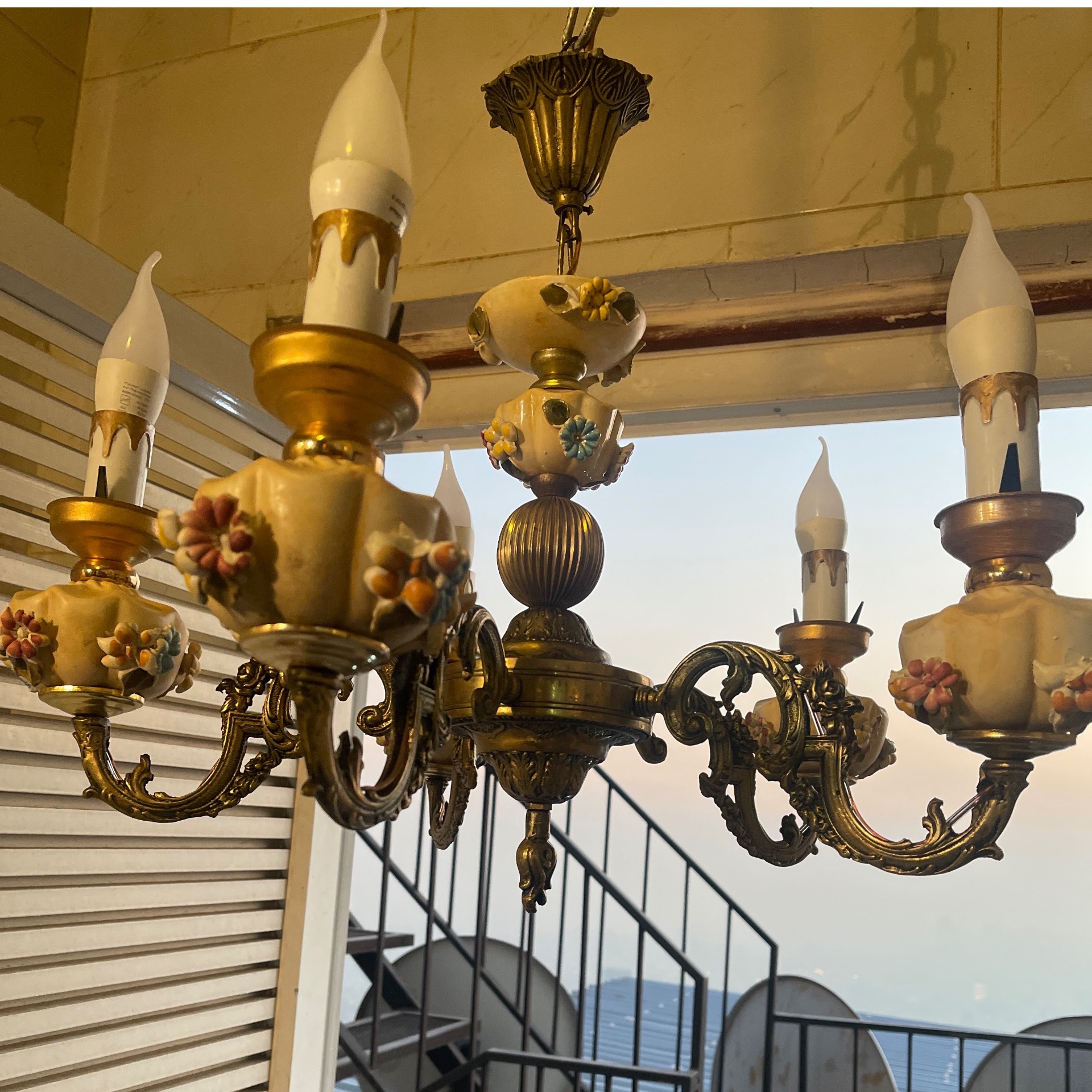 لوستر 5 شعله برنزی و سرامیک بدون حباب