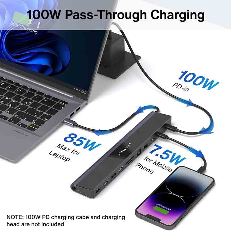 شارژ لپتاپ 85 واتی این داک از شارژ لپتاپ تا 85 واتی پشتیبانی میکند یا در حالی که پورت 7.5 واتی PD برای شارژ تلفن یا تبلت شما اشغال شده است، تا 65 و کاهش مییابد. ...
