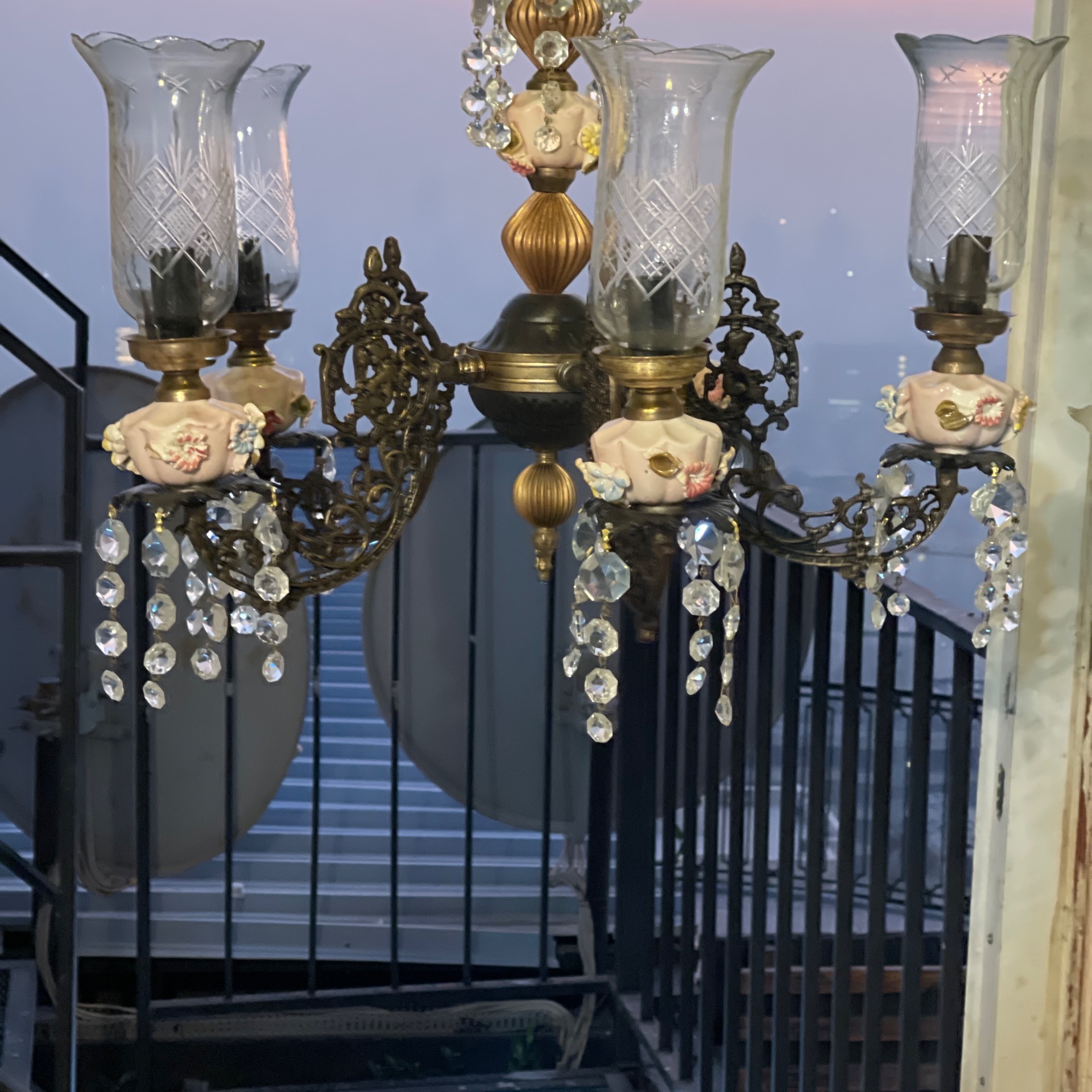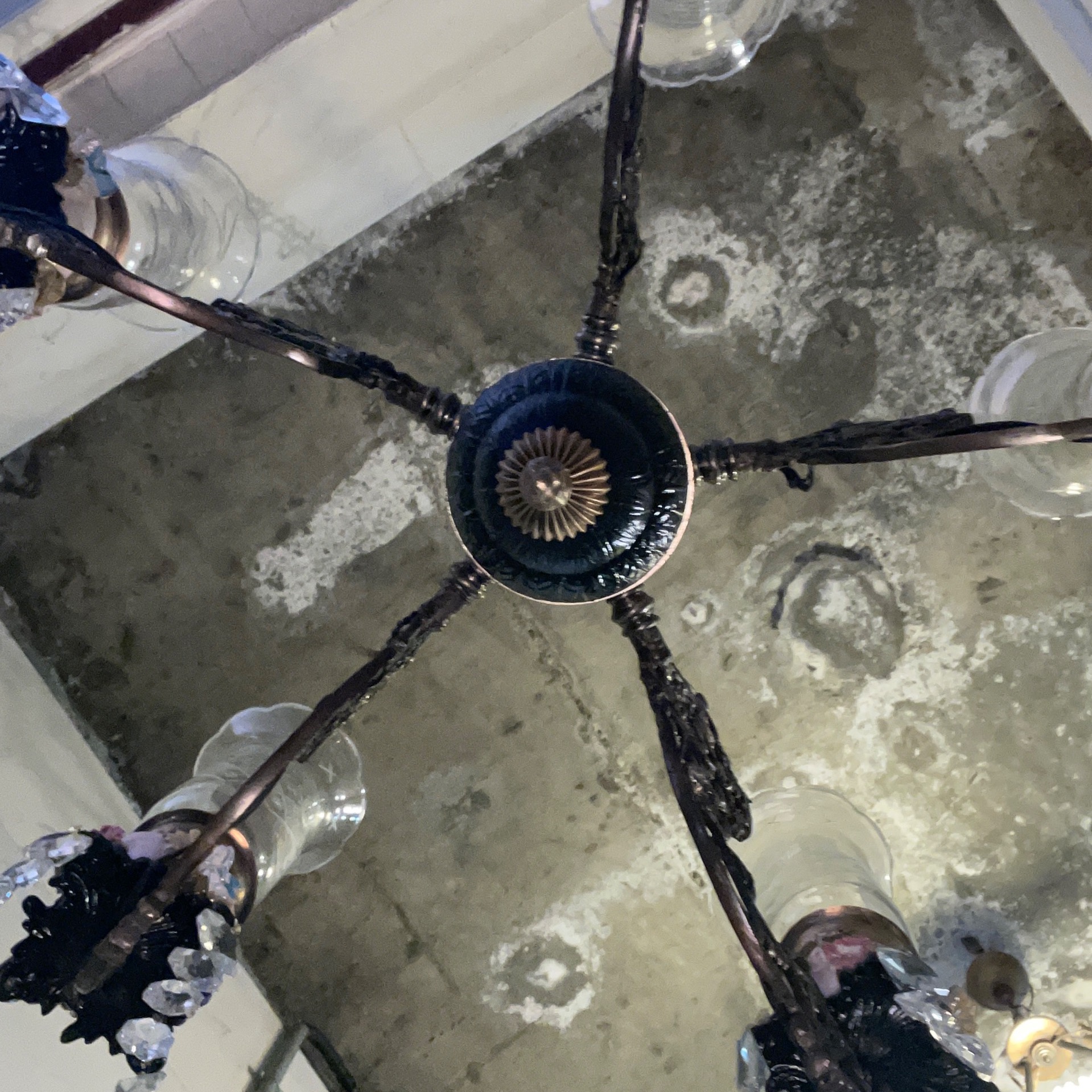 لوستر 5 شعله برنزی با حباب کریستال تراش خورده
