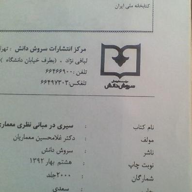 کتاب سیردرمبانی نظری معماری تالیف معماریان چاپ1392