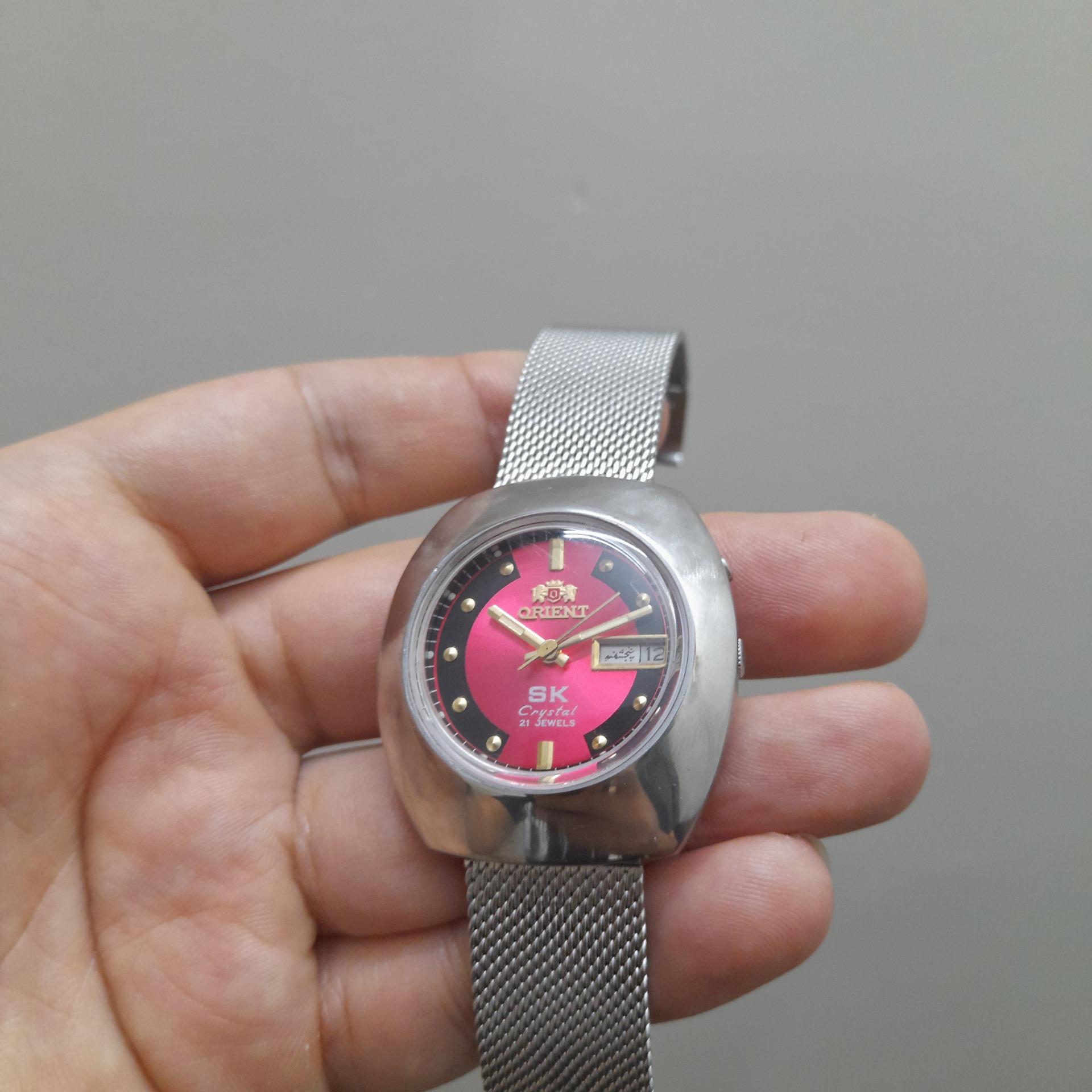 اورینت اتومات مدل sk قاب درشت صفحه خوشرنگ و زیبا تقدیمی فارسی و اینگلیسی ساعت سالم و تمیز