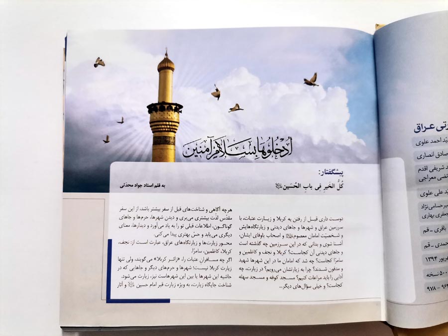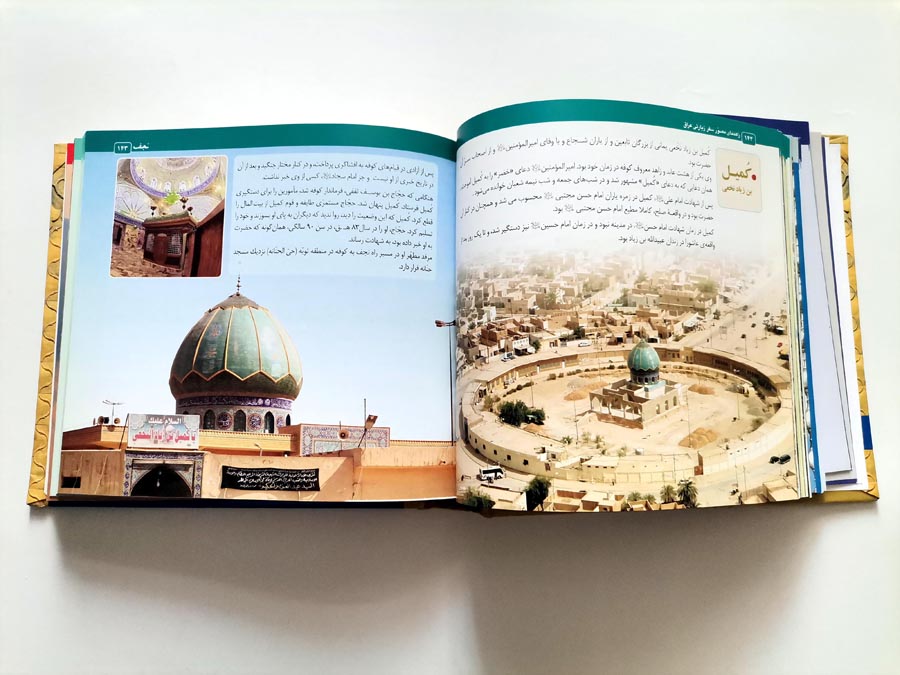 در هر فصل تاریخچه، نقشه، زیارت و اطلاعات عمومی مورد نیاز و ارائه شده است و با تصاویر تمام رنگی خواننده را با کشور عراق و مراقد مطهر ائمه و یاران آنان آشنا می کند.
