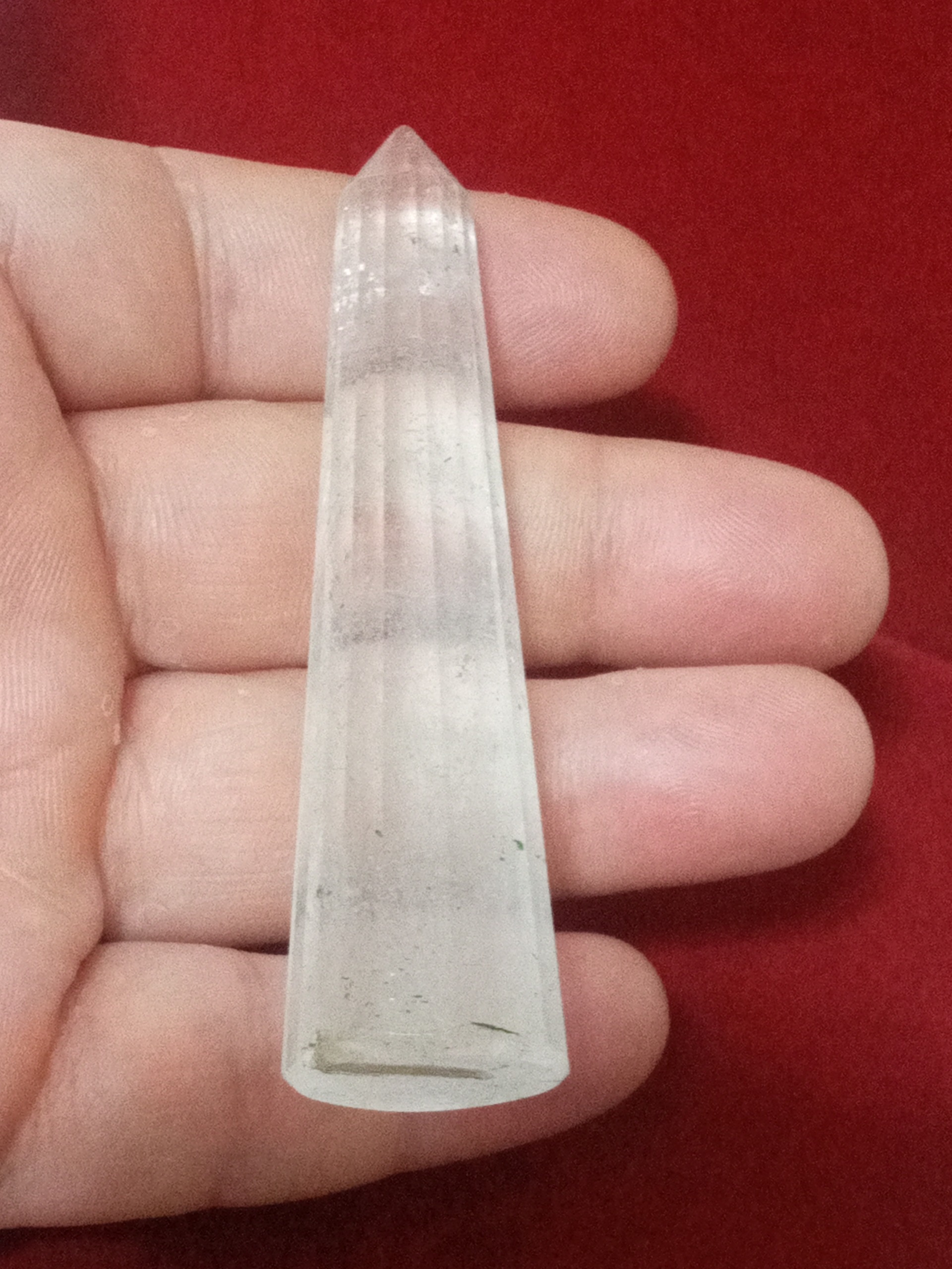 در قسمت پایین منشور، شیار و ناخالصی سنگ است که در عکس مشخص است و طبیعی است.
