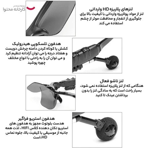 ویژگی های عینک آفتابی و هندزفری بلوتوث FASHION PLONEER :- قابل اتصال به تمام دستگهاهای دارای بلوتوث , اندروید و IOS