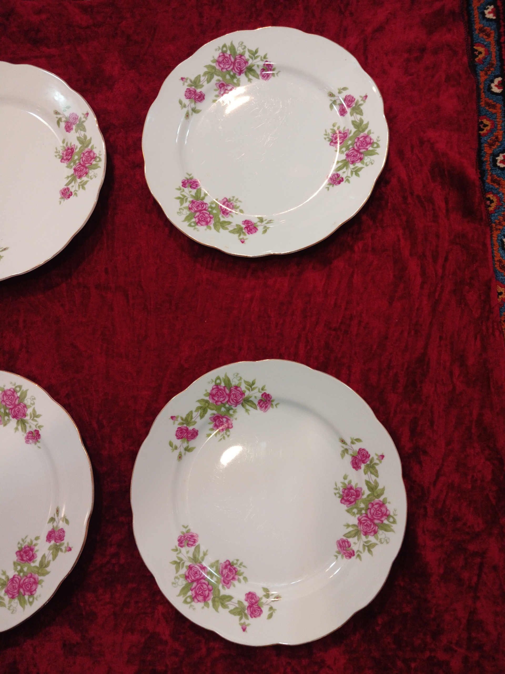 تعداد 6 عدد (یک دست) بشقاب پلو خوری چینی قدیمی مال زمان پهلوی سالم و بدون ایراد خیلی تمیز و مرتب نو اندازه طول قطر 23 سانت.