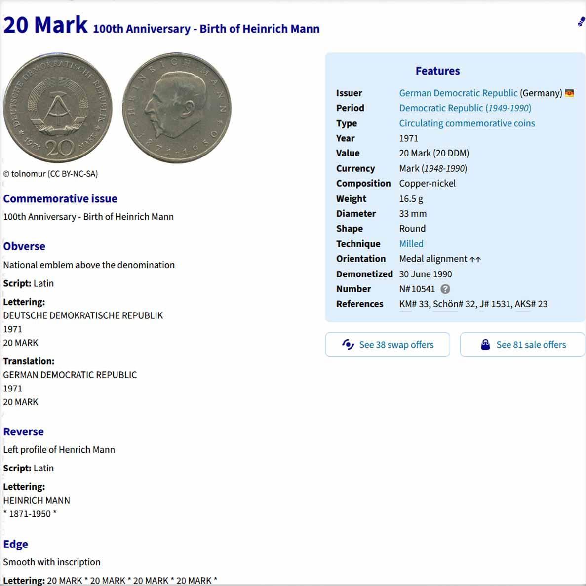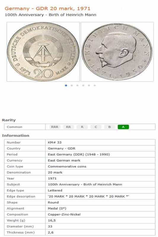 سکه یادبودی 20 مارک آلمان شرقی 1971 (نایاب)16.5گرم