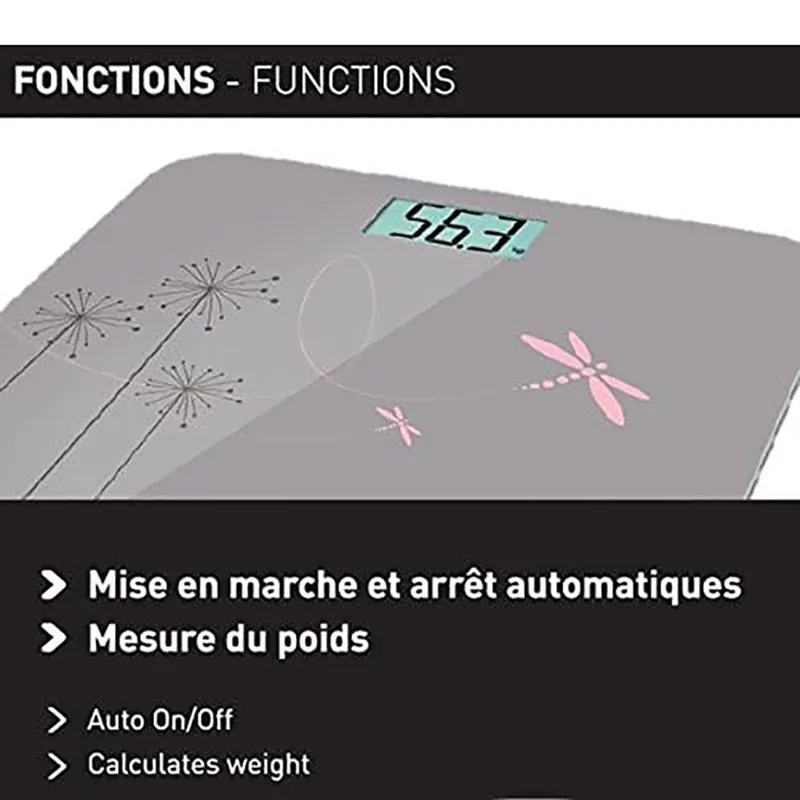 ترازو الکترونیکی حمام کلاسیک و زیبا، ذخیره سازی آسان به لطف فرمت فشرده و پلت فرم شیشه ای فوق نازک (1.8 سانتی متر)، گوشه های گرد برای راحتی.