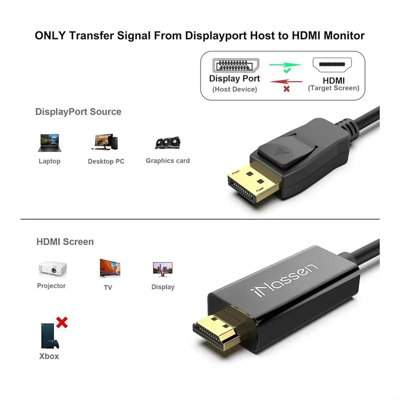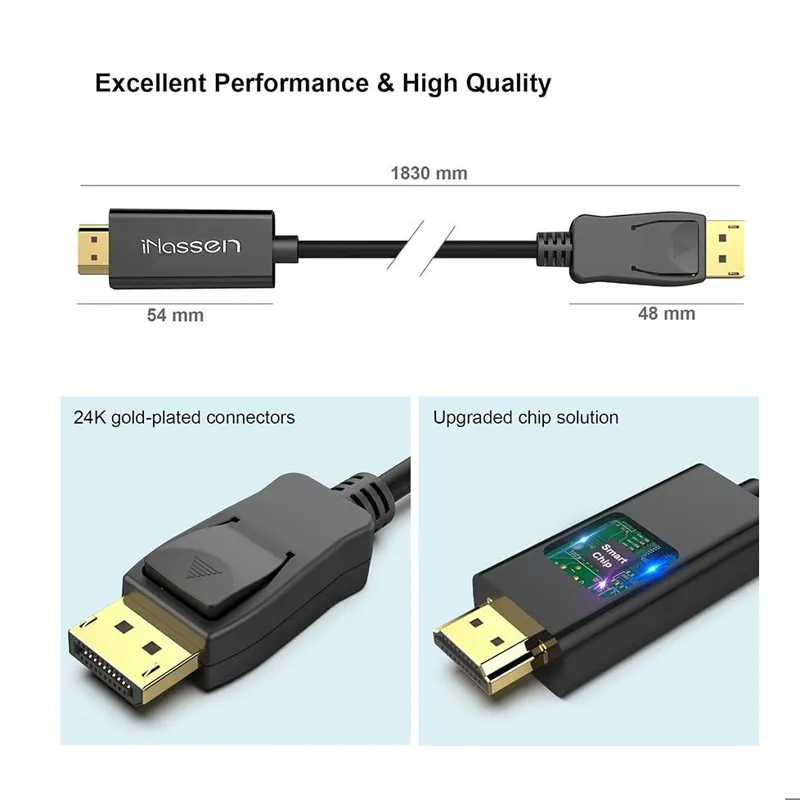 انتقال عالی : کابل iNassen DisplayPort به HDMI دارای طول کابل 6 فوت یعنی 1.8 متر است . از وضوح 4K پشتیبانی می کند از بهترین تراشه و صفحه نمایش چندگانه حرفه ای برای پخش و دقیق استفاده می کند.