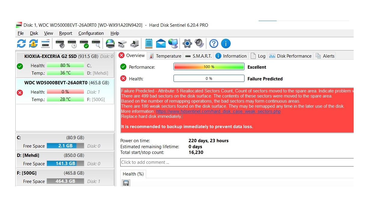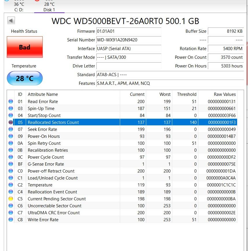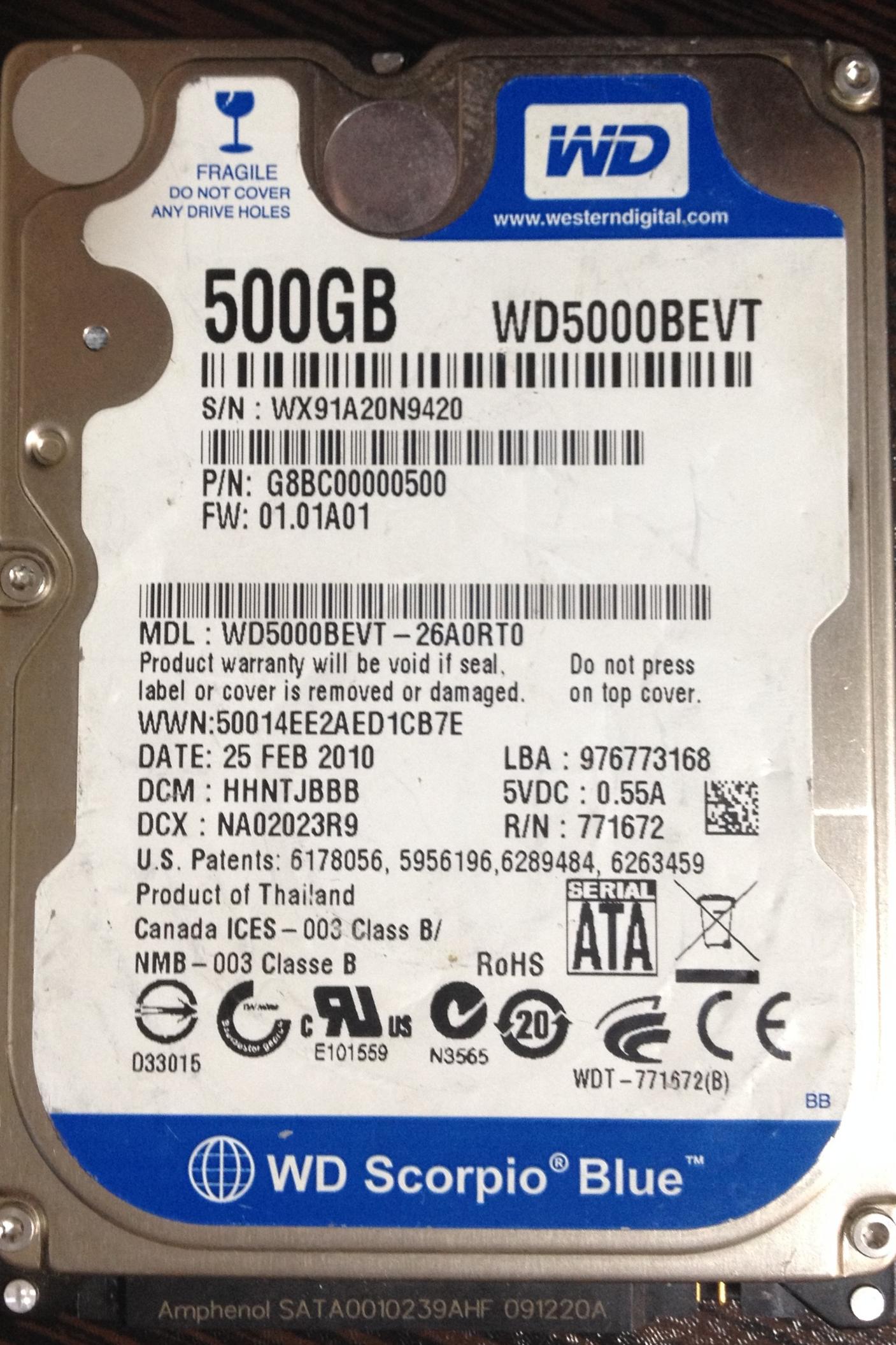 هارد لپ تاپ وسترن دیجیتال 500 گیگ معیوب