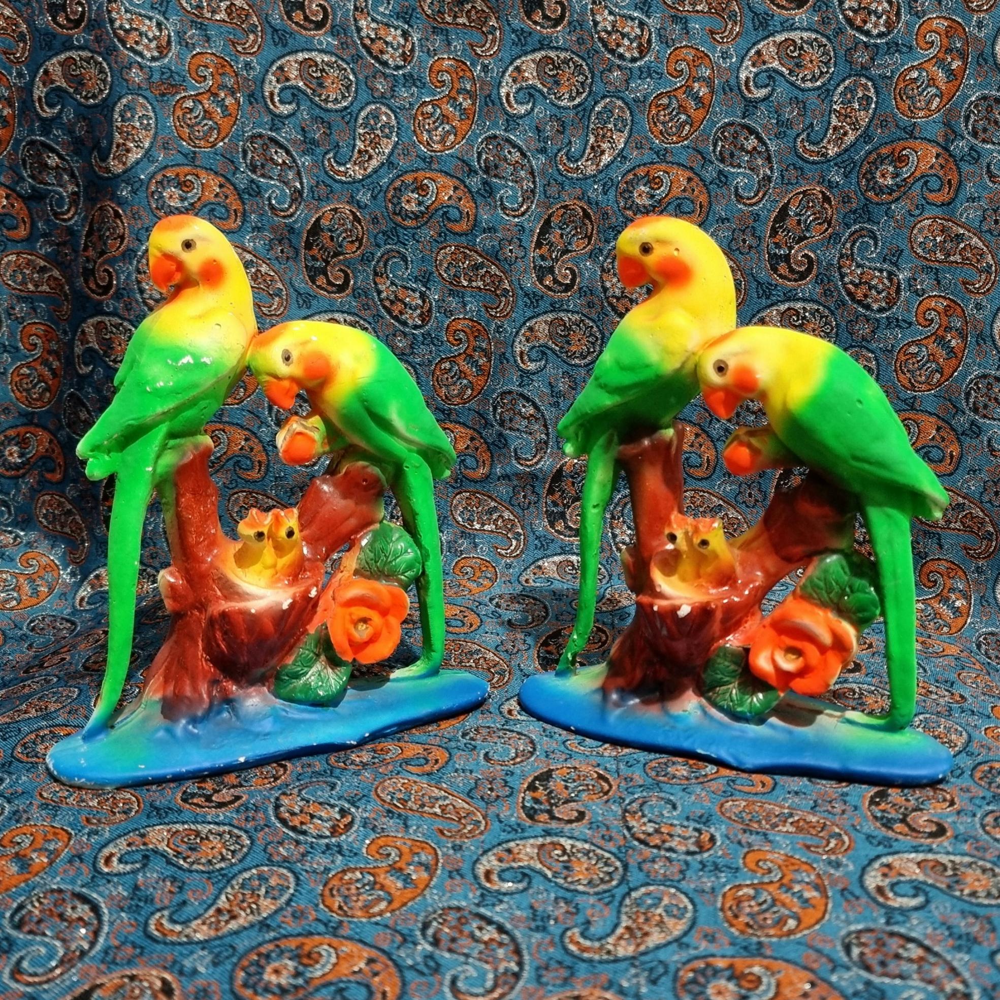 جفت مجسمه سفال سرامیک طوطی بسیار قدیمی و زیبا کاملا در حد نو در برخی نقاط دارای رنگ رفتگی بسیار جزئی میباشد مطابق تصویر ارتفاع 20 سانت عرض 17/5 سانت