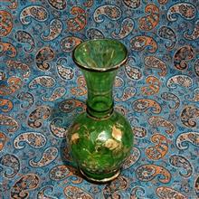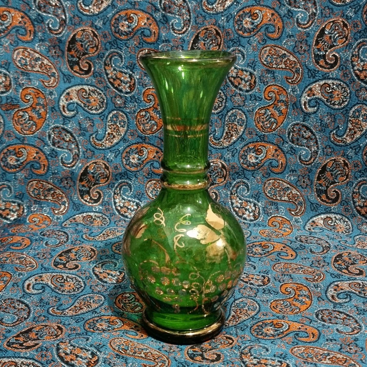 گلدان شیشه بلور سبز قدیمی طلاکوب ( توضیحات )