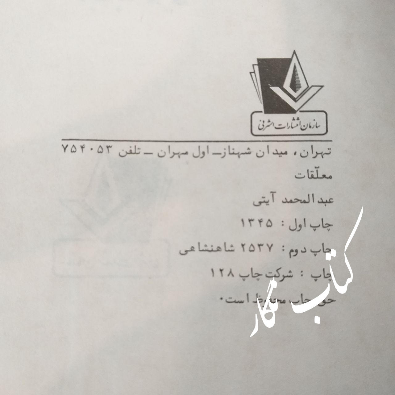 چاپ دوم : 2537 شاهنشاهی (1357 شمسی)