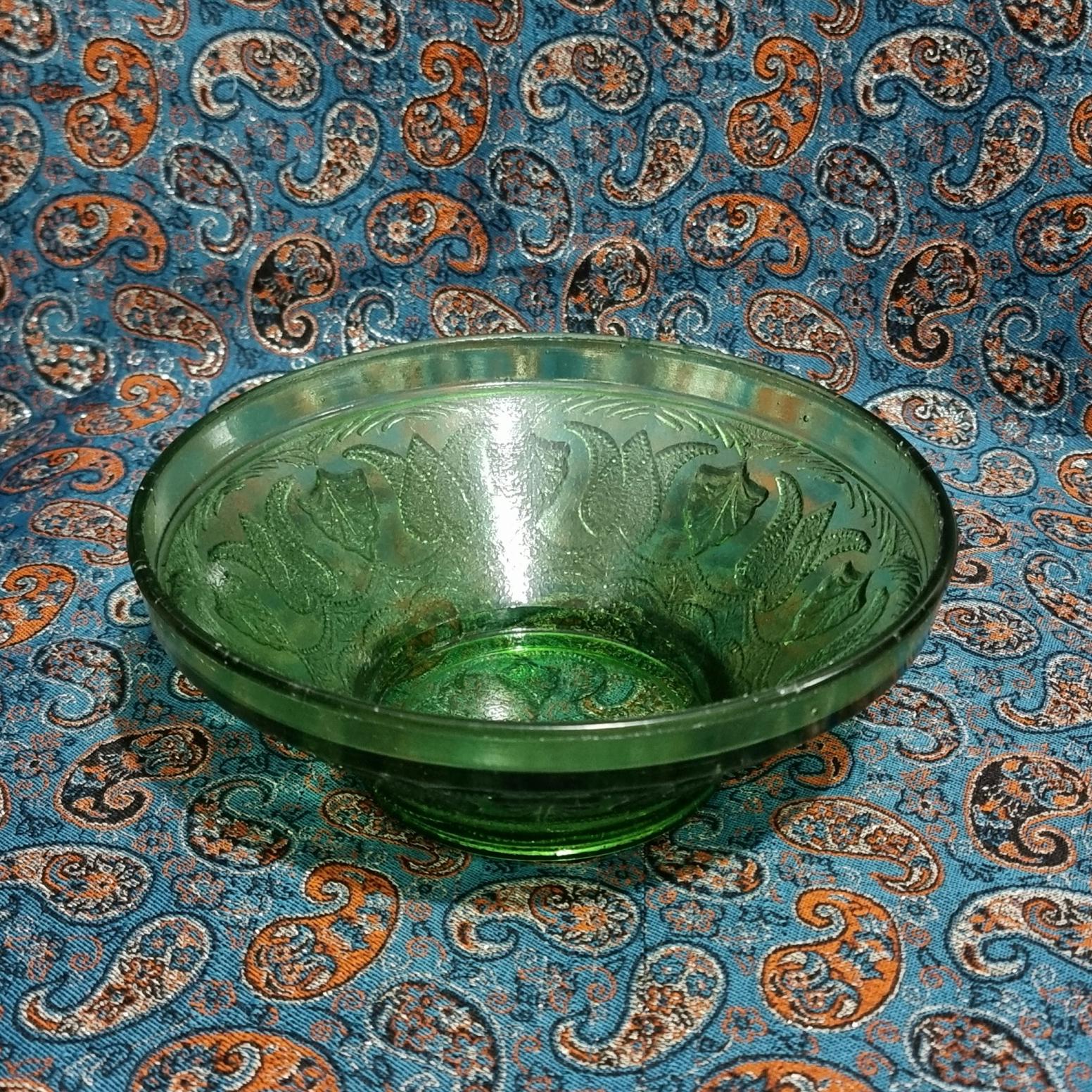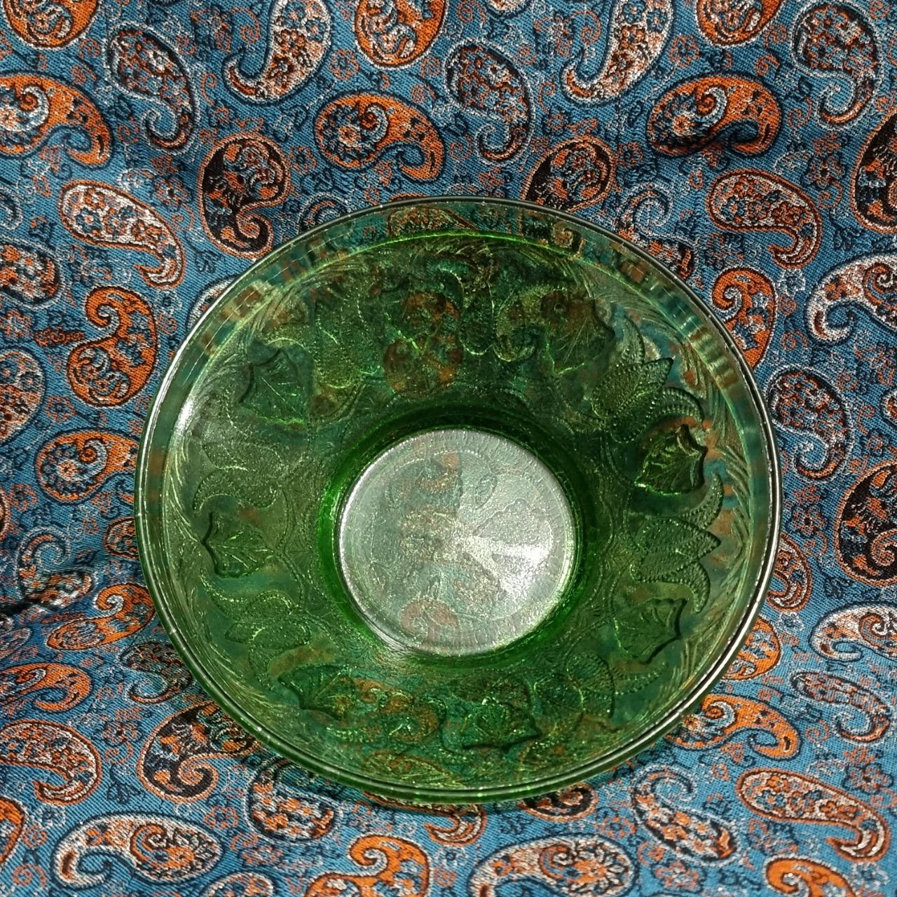 کاسه میوه خوری یا آجیل خوری بلور سبز قدیمی بسیار زیبا کاملا در حد نو و استفاده نشده مطابق تصویر ارتفاع 8 سانت قطر 21/5 سانت