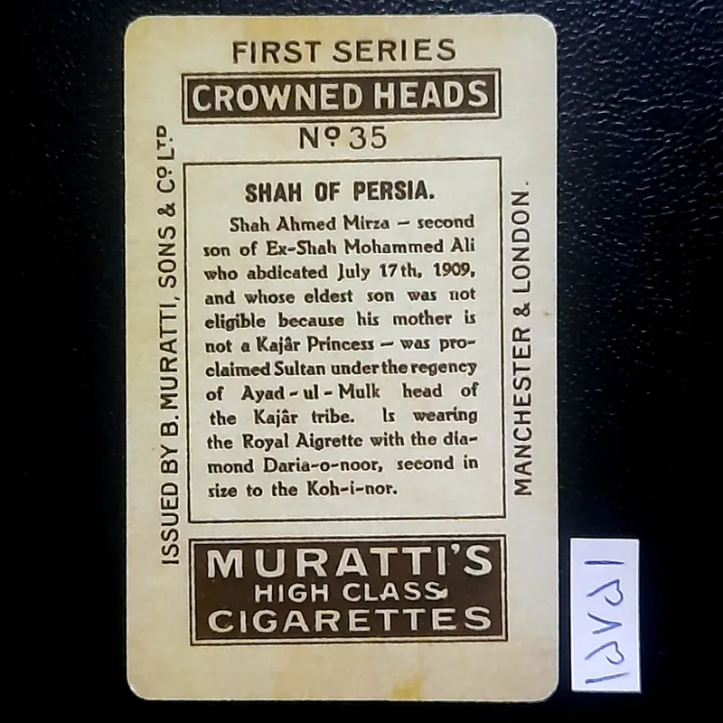 کارت سیگار کمیاب و ارزشمند احمد شاه،سری اول