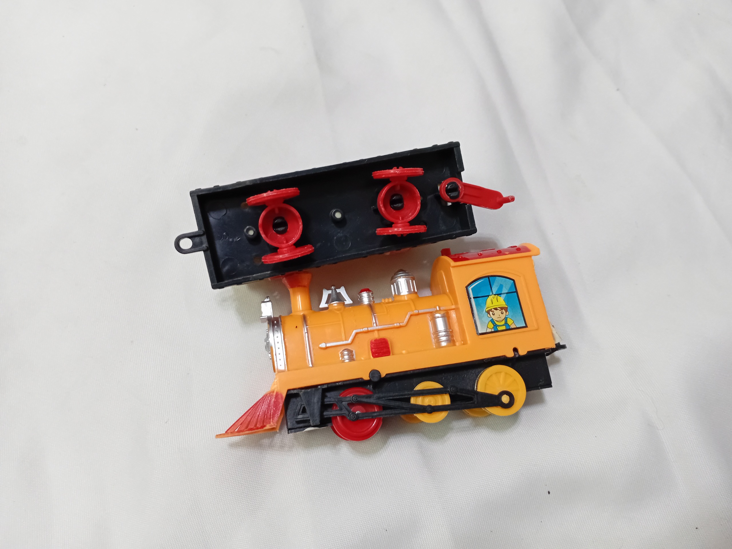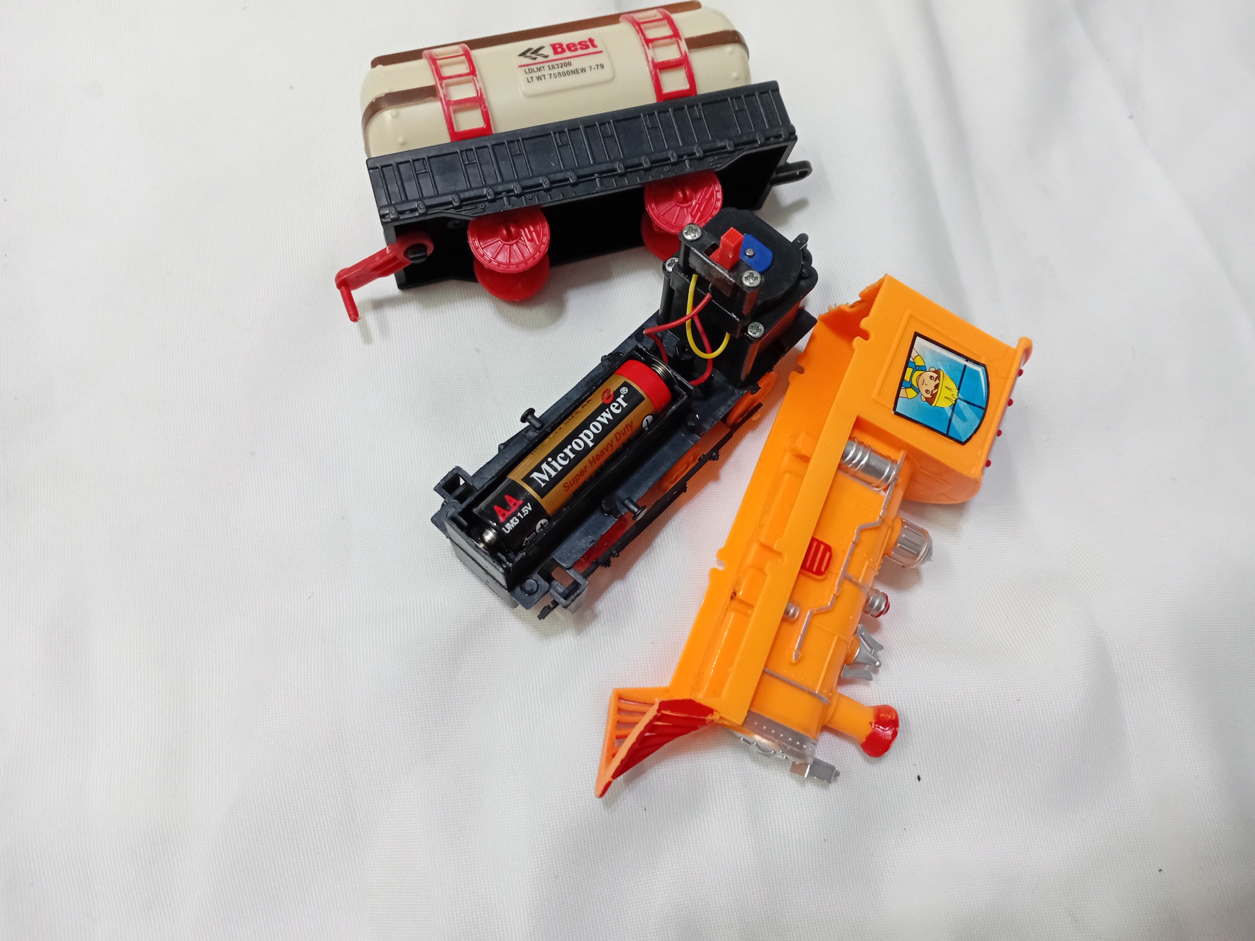 قطار و یک واگن مطابق تصاویر ارسال می شود بدون باتری . یک عدد باتری قلمی میخوره روشن میشه و راه میره . واگن فابریک این قطار نیست و همین طوری دکوری کنارش گذاشته شده