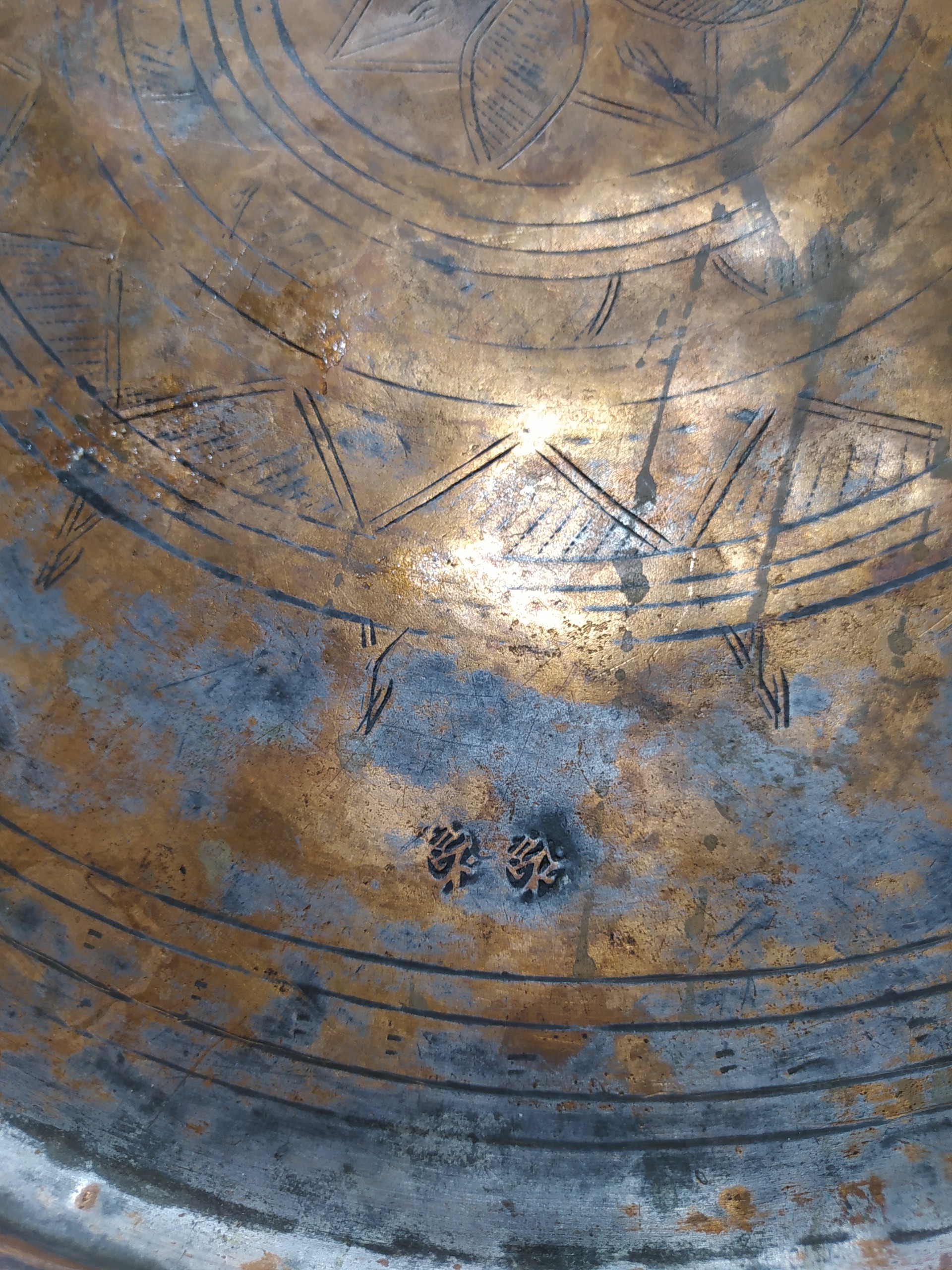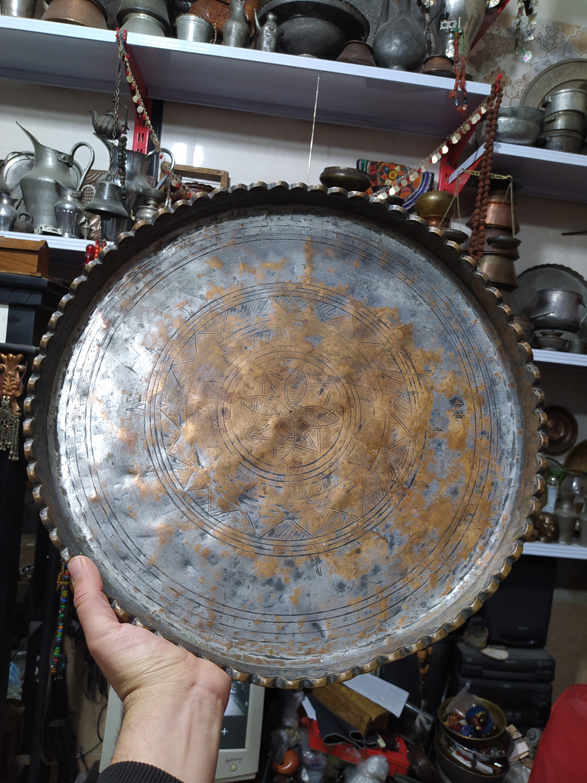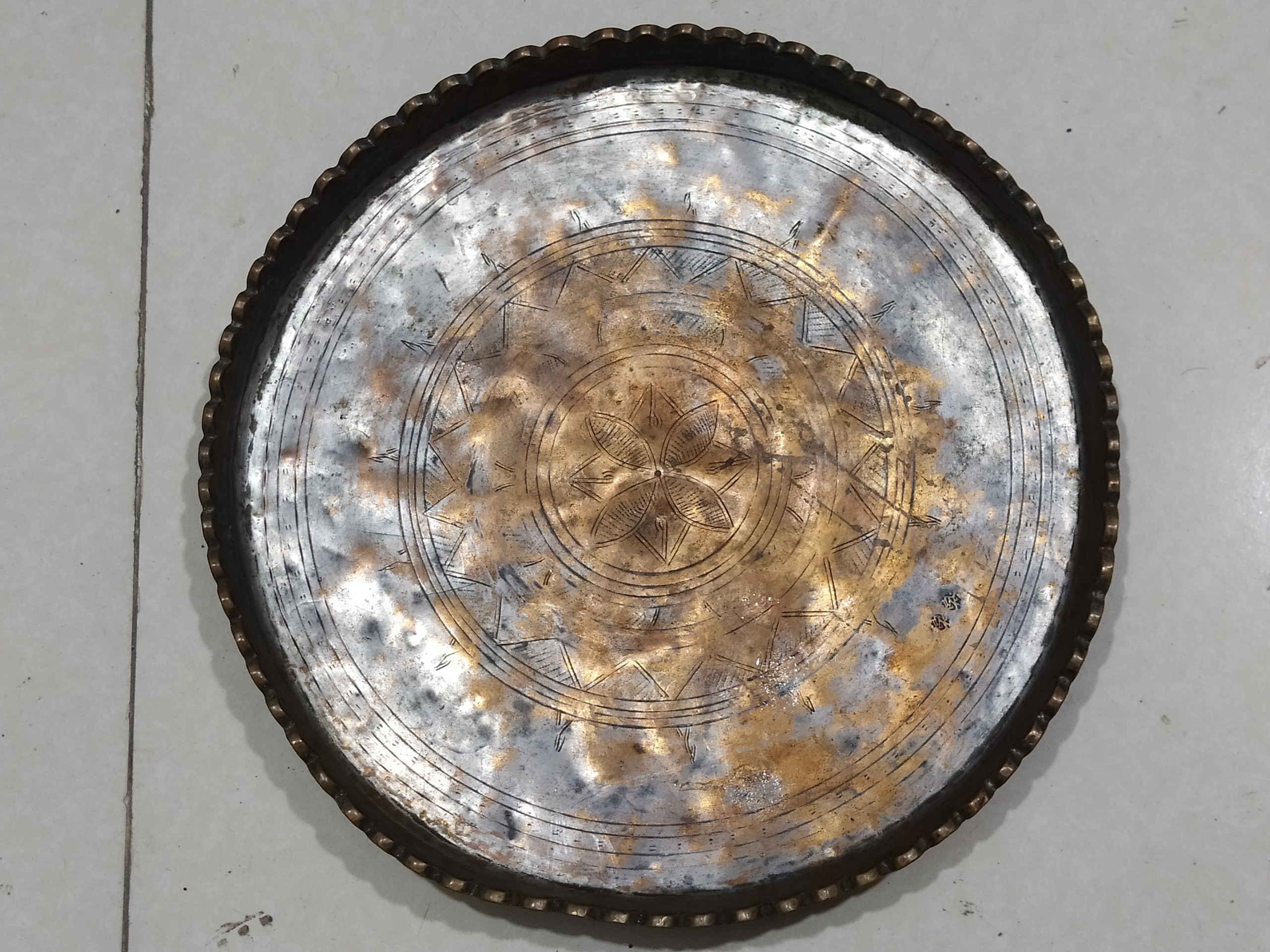 مجمع یا سینی مسی قدیمی جفت مهر قدمت پهلوی