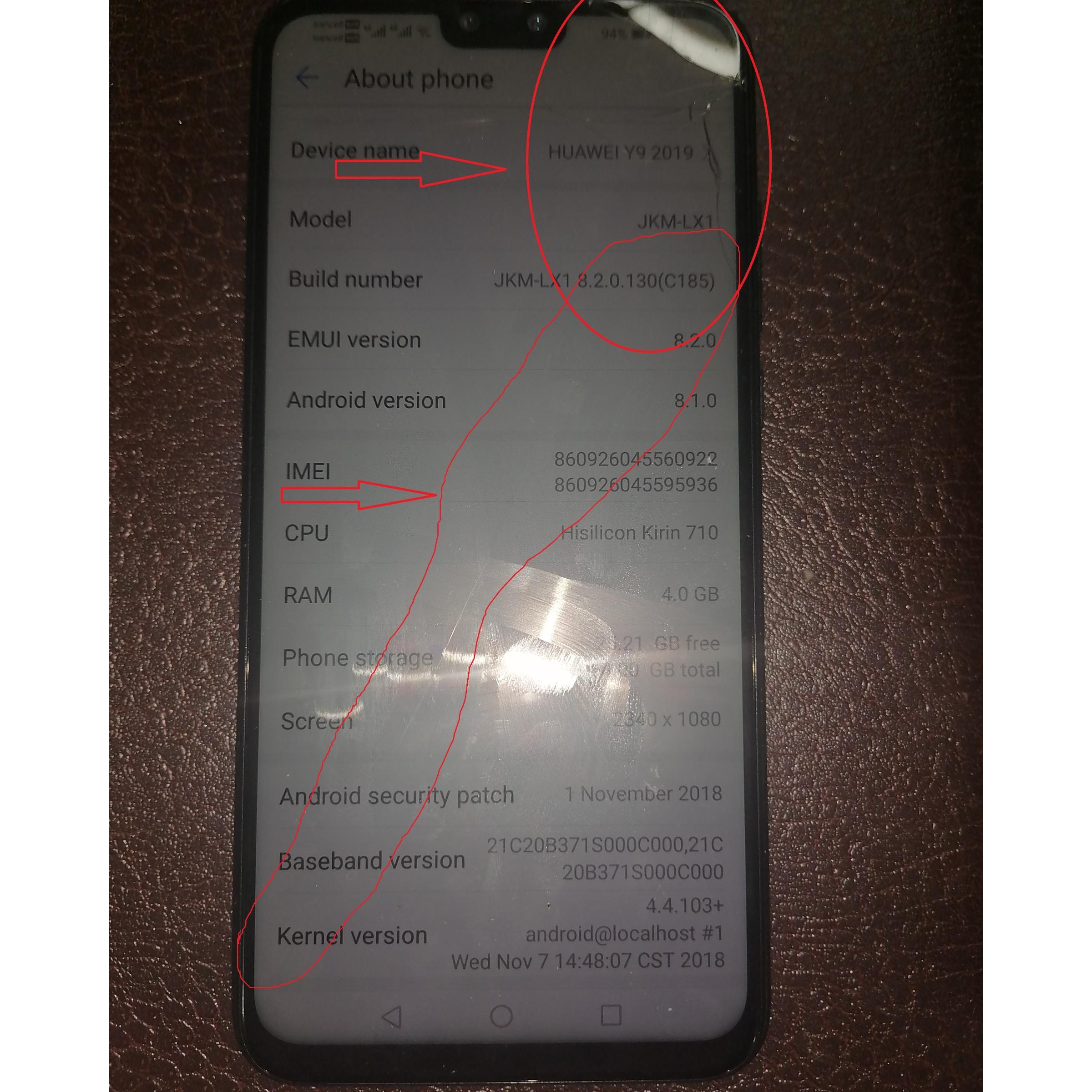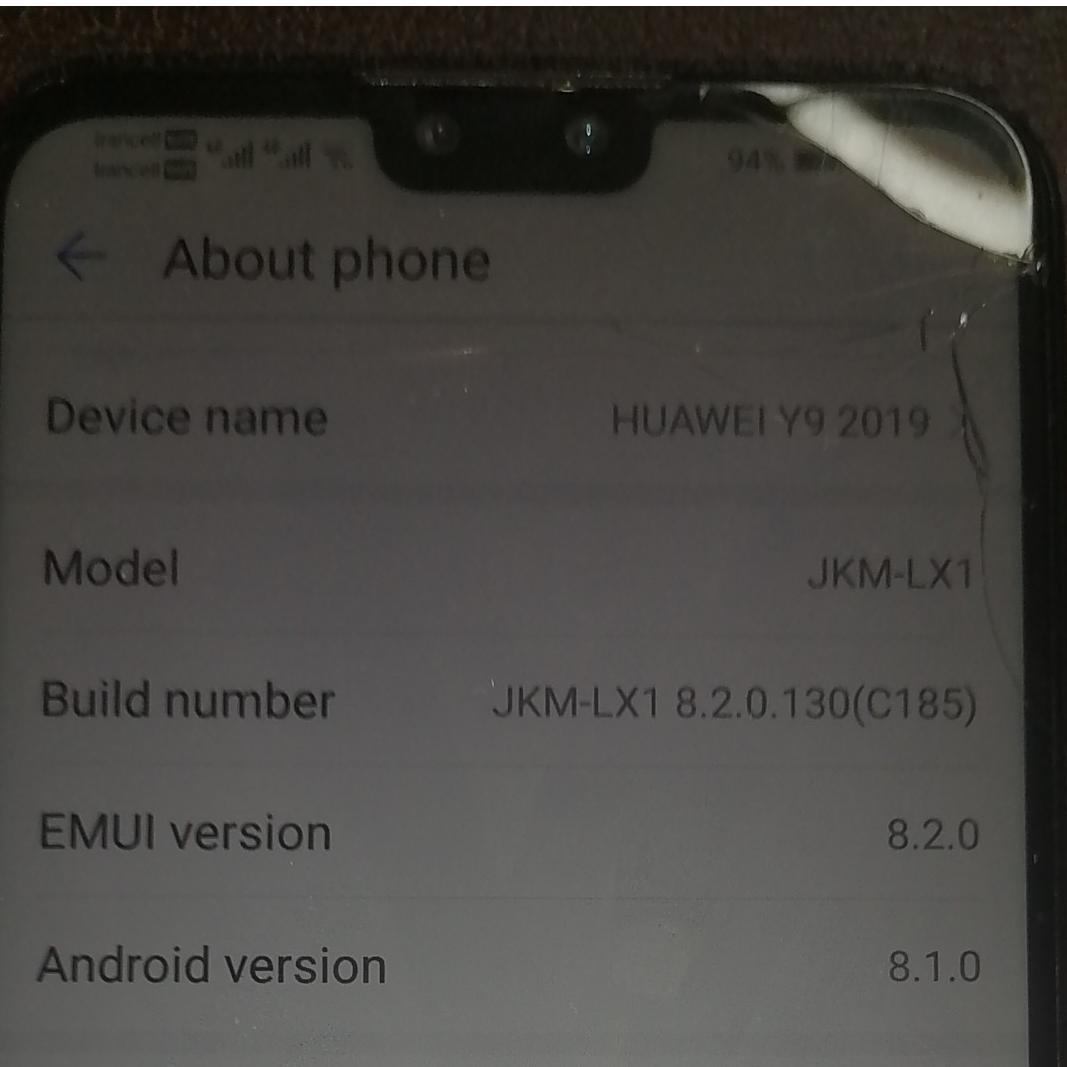 هواوی y9 وضعیت سفید با یک ترک رو صفحه