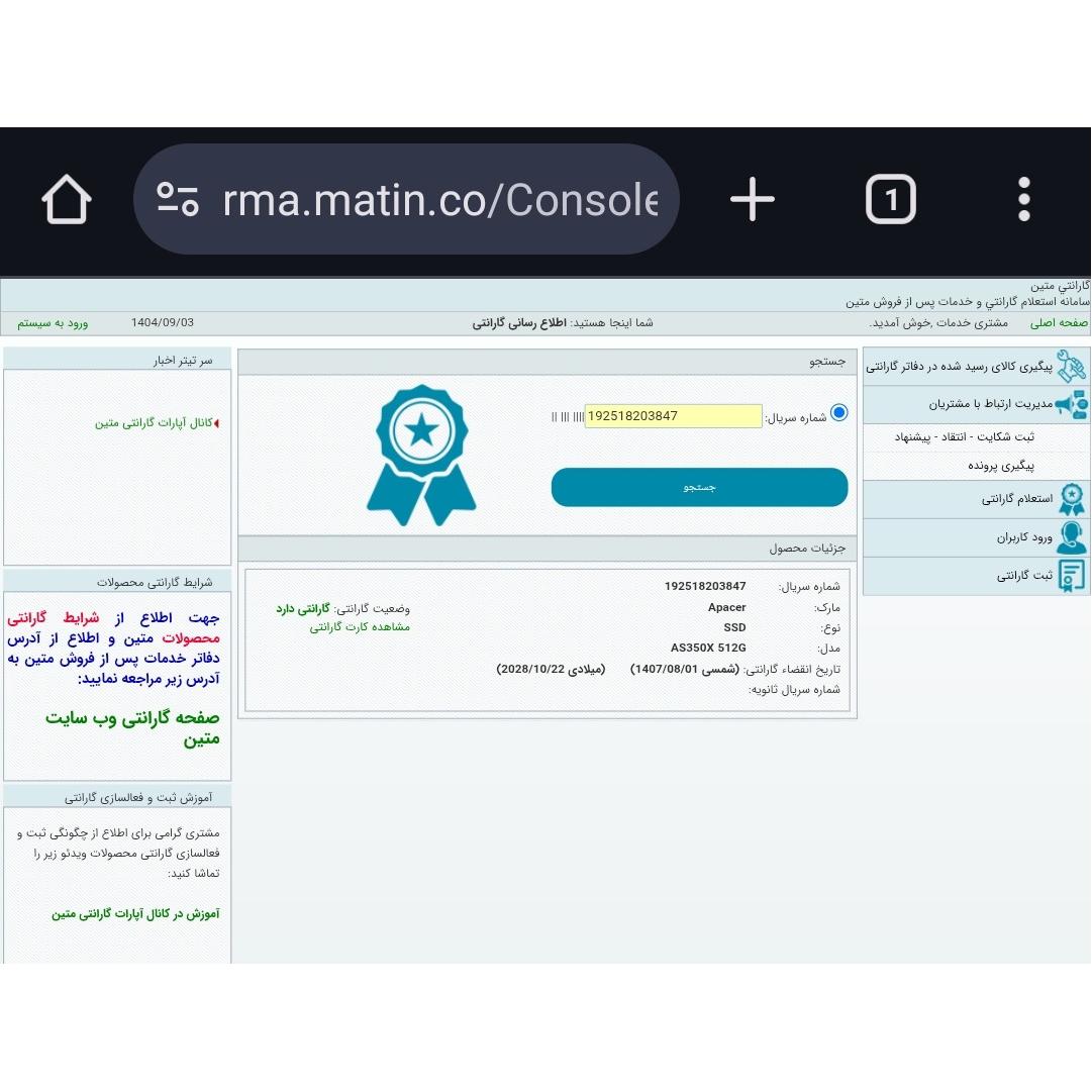 هارد نو با کارکرد صفر و گارانتی متین ولی پک ندارد