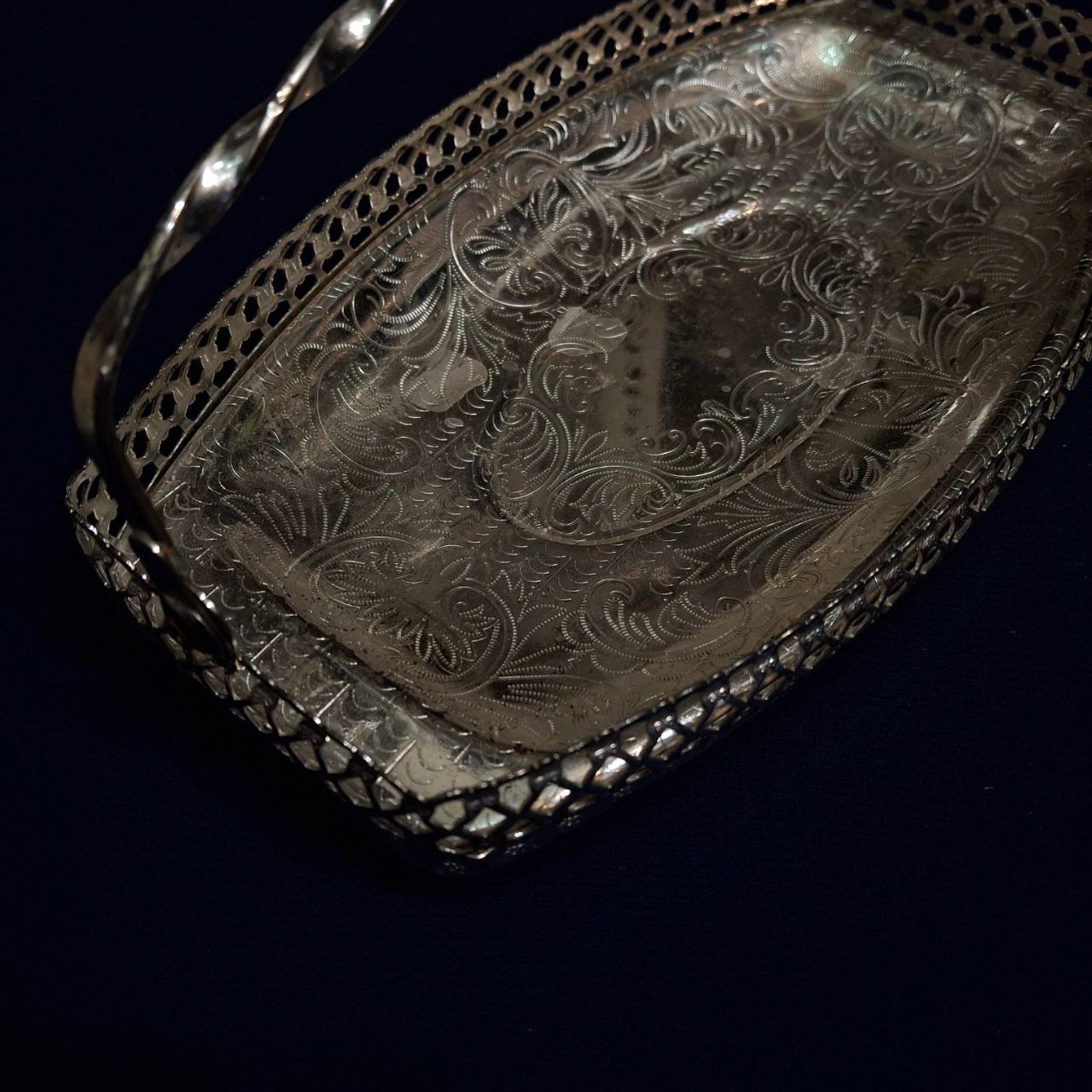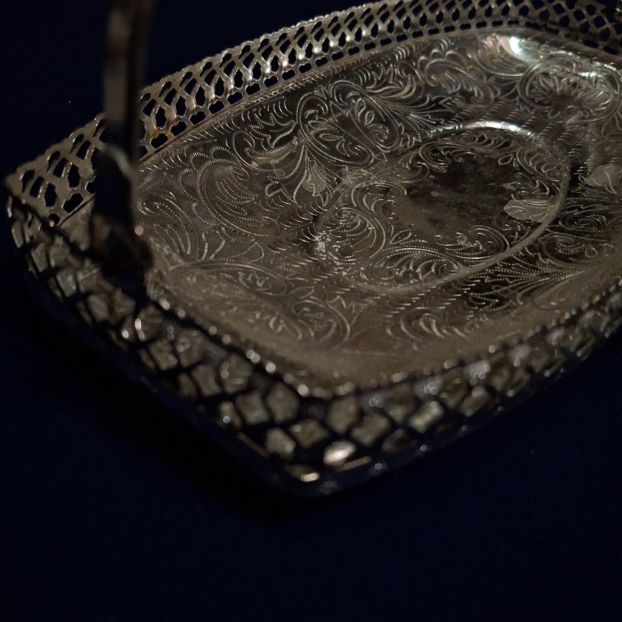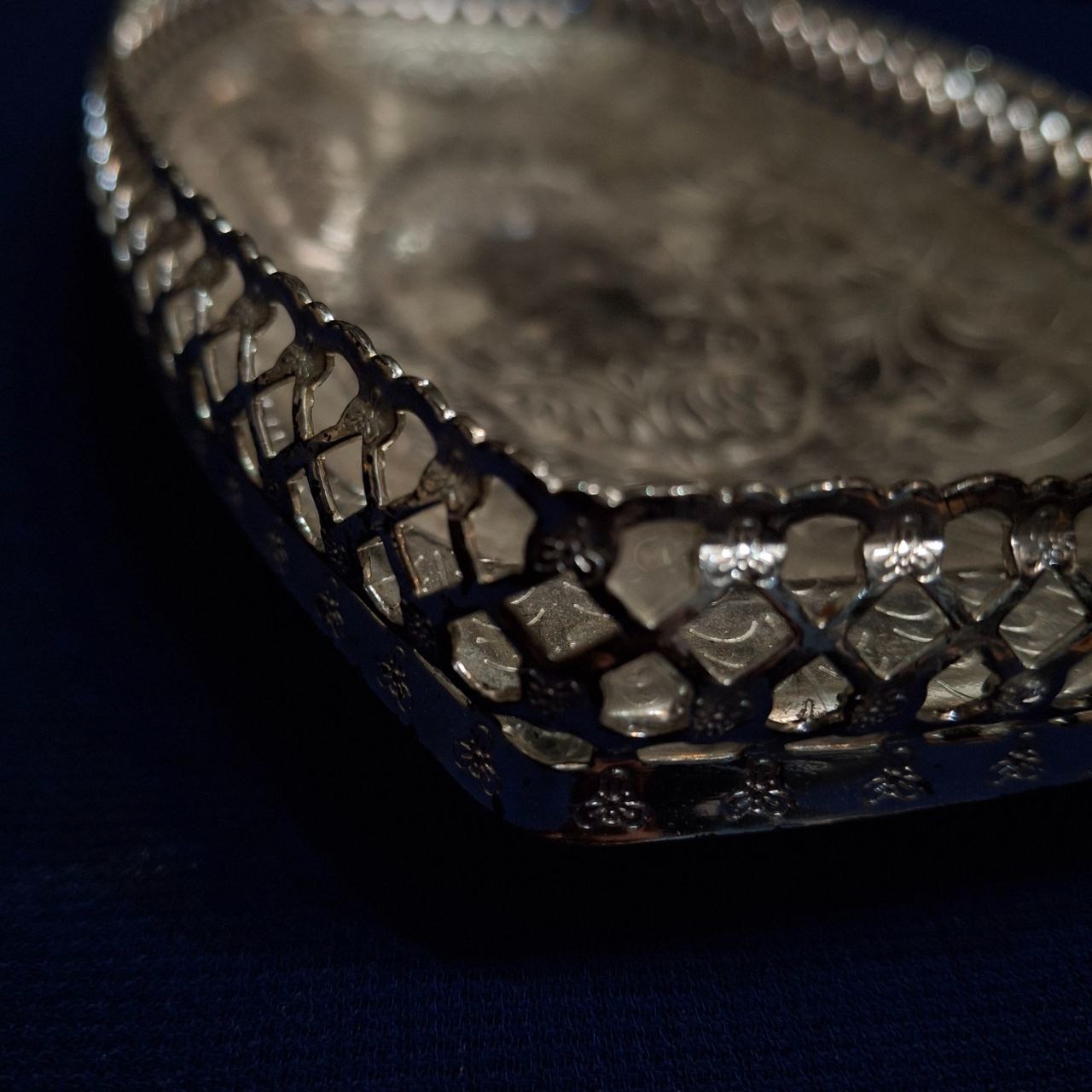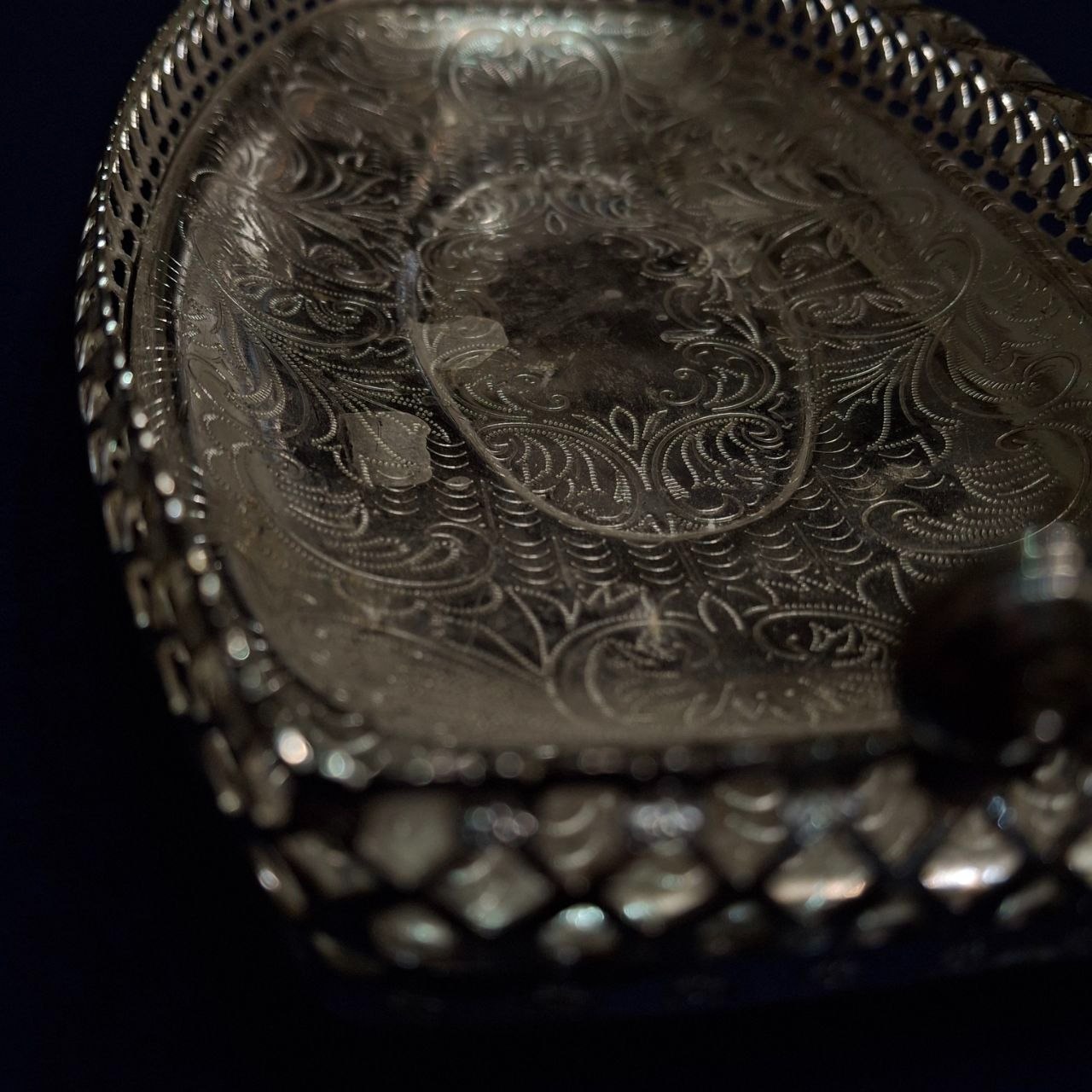 ظرف قدیمی شیرینی خوری دسته دار برنجی آبکاری نقره