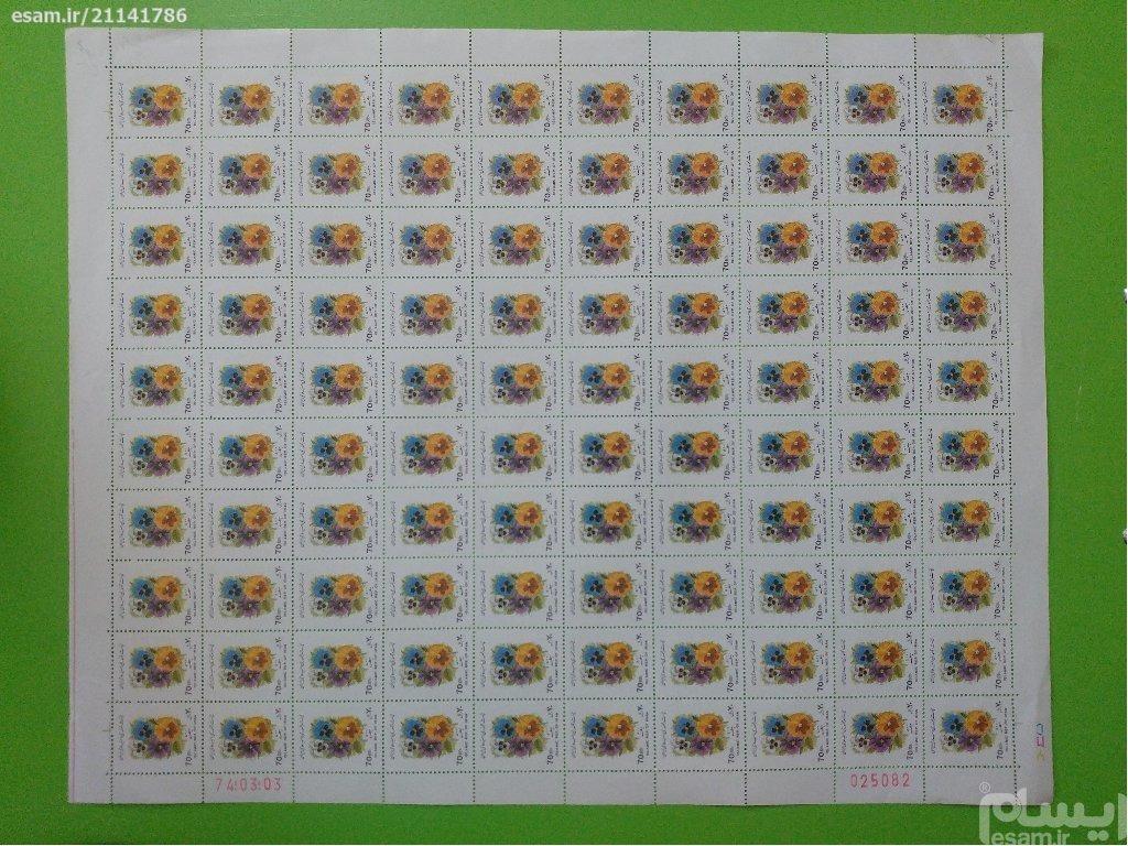 ورق تمبر 100 عددی و ارزشمند با تصویر گل بنفشه
