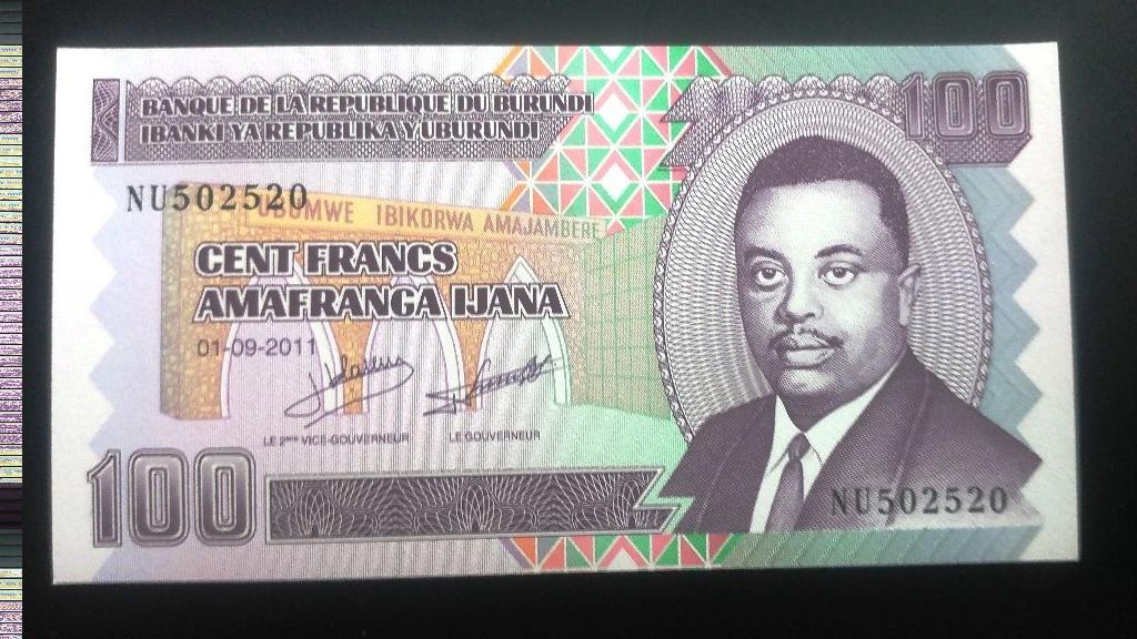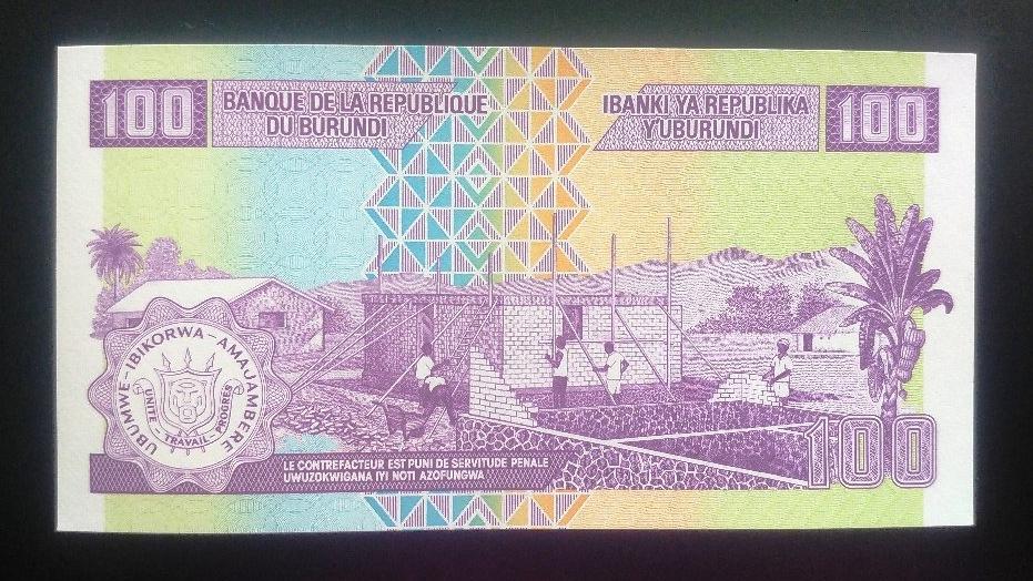 اسکناس 100 فرانک جمهوری بوروندی(در مرکز افریقا)