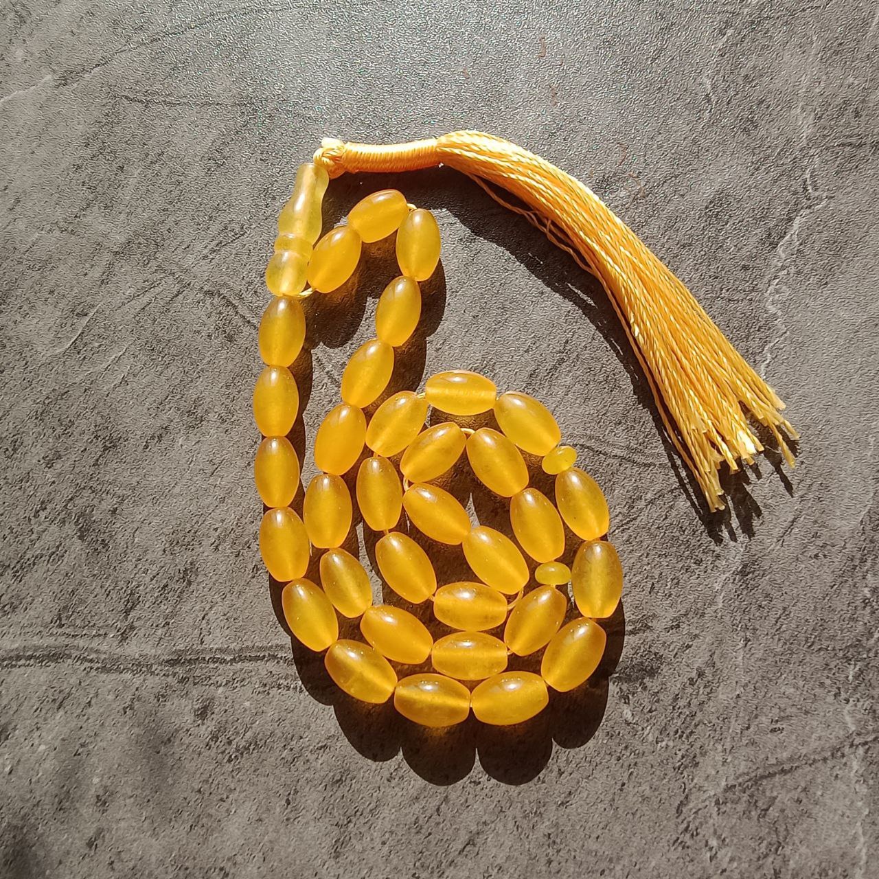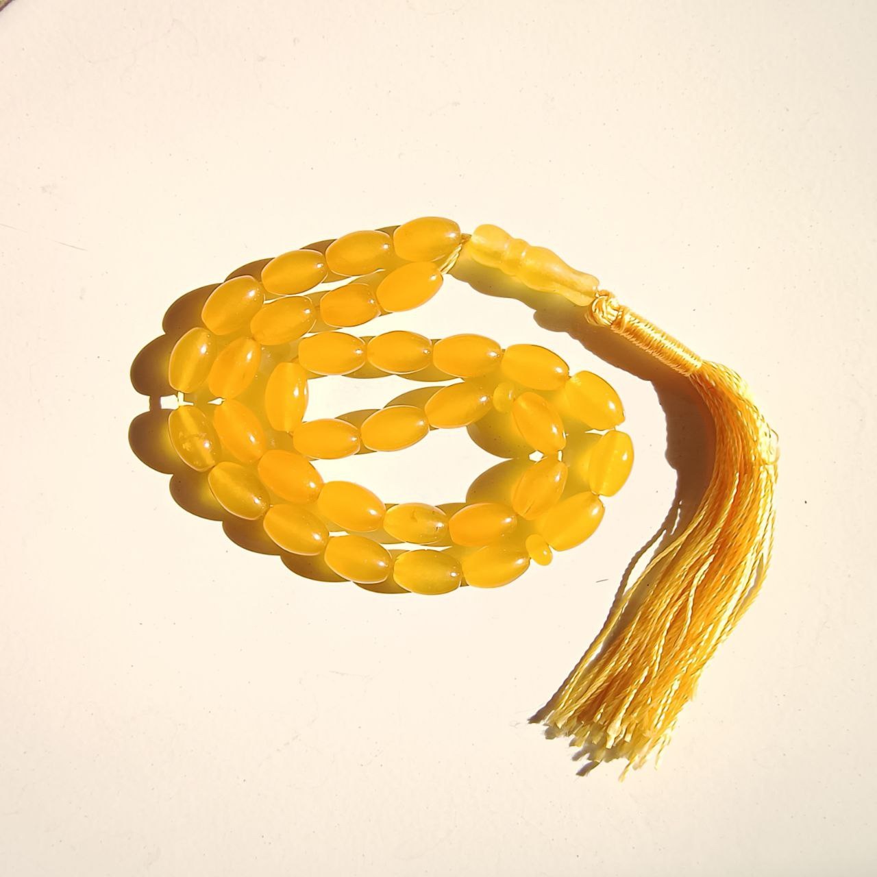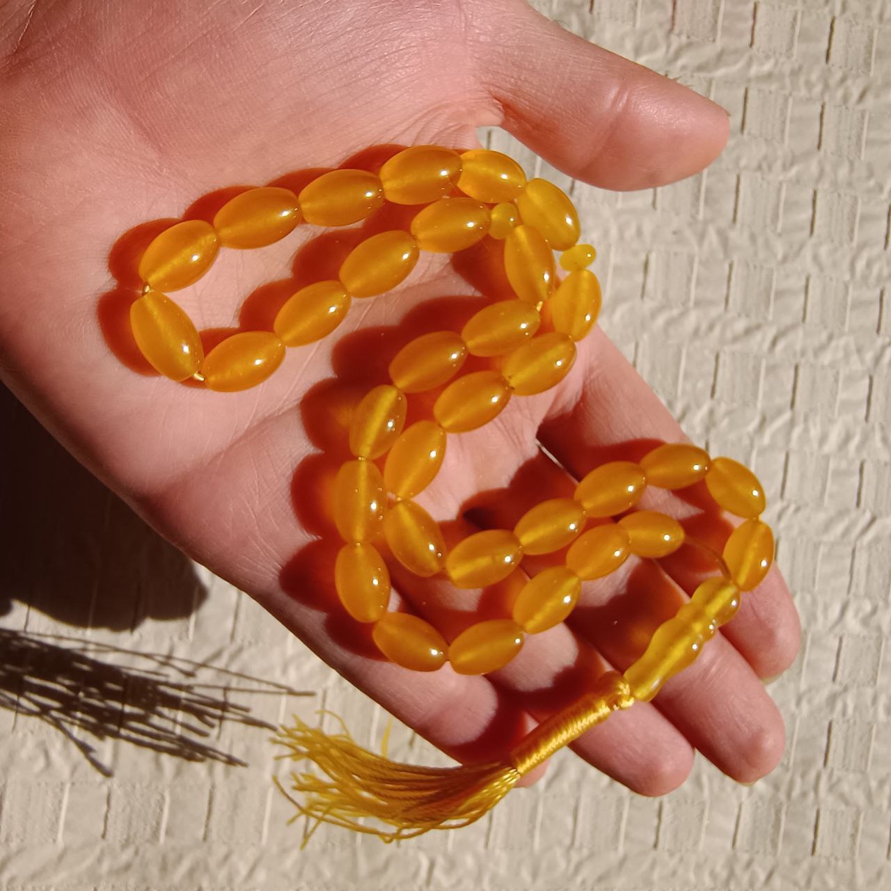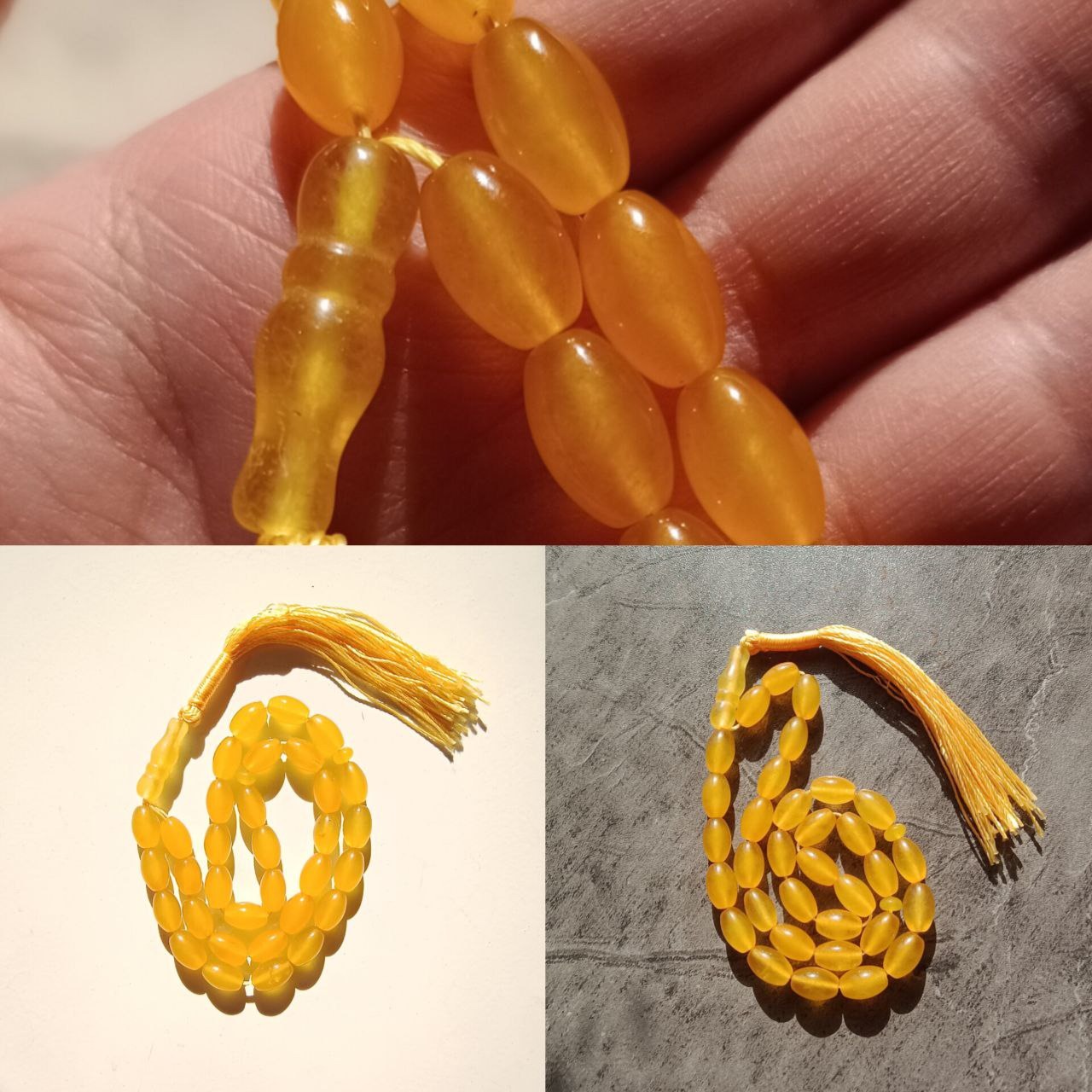 تسبیح 33 دانه سنگ جید زرد خوش تراش خوش دست