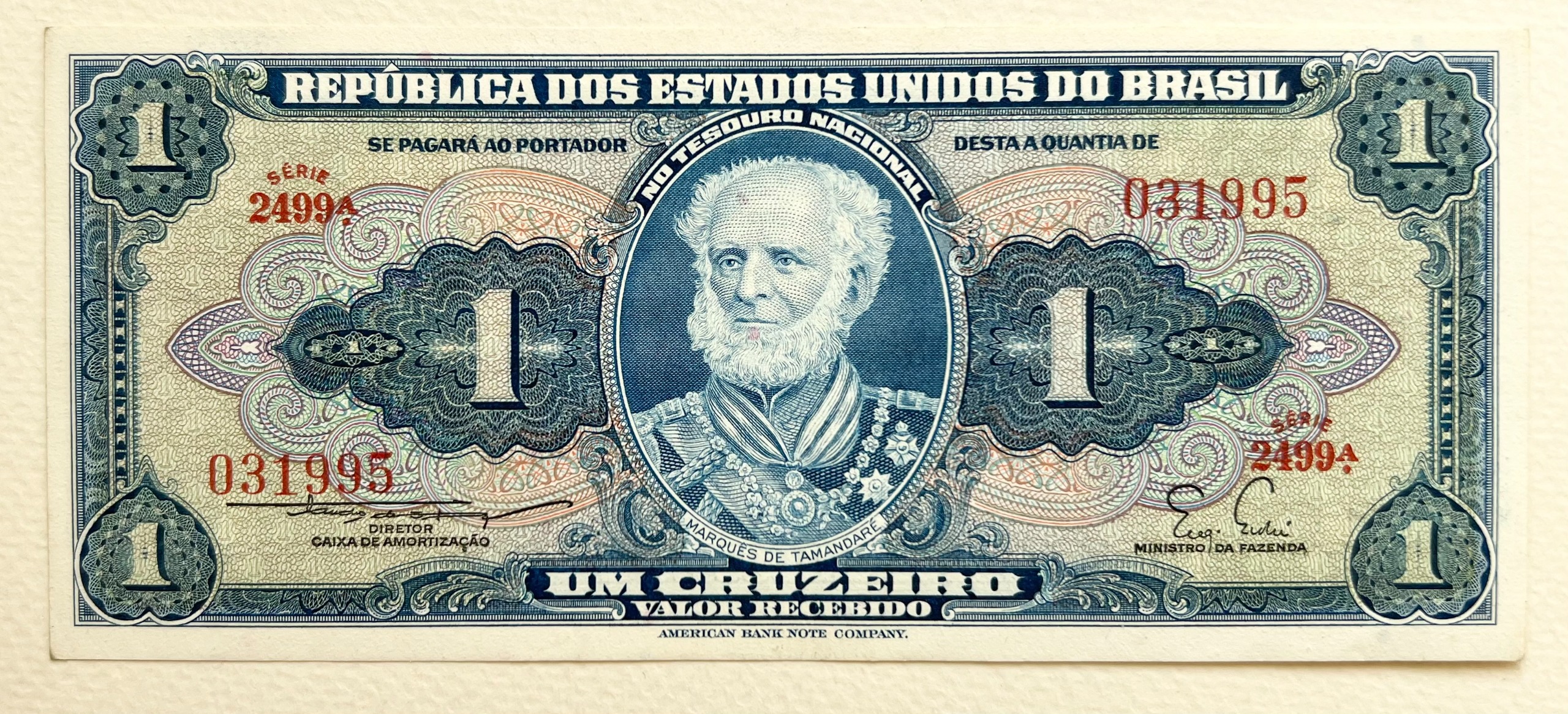 اسکناس کمیاب خارجی 1 کروزیرو برزیل 1954 درحد بانکی