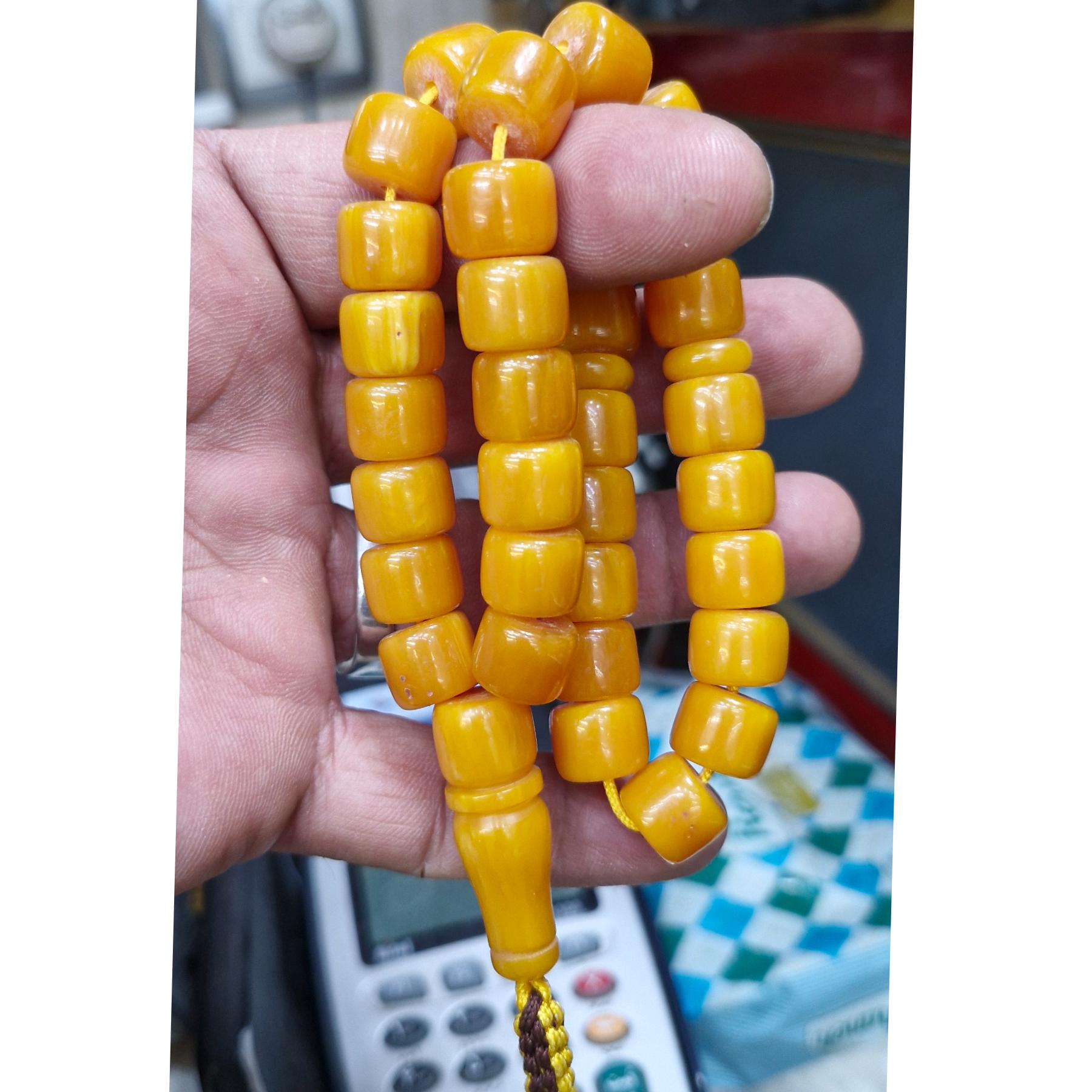 تسبیح سندلوس سی و سه دانه شمش آلمان تراش دست رگه دار وزن 50 گرم قد22سانت تراش چرتکه ای سایز کارمندی