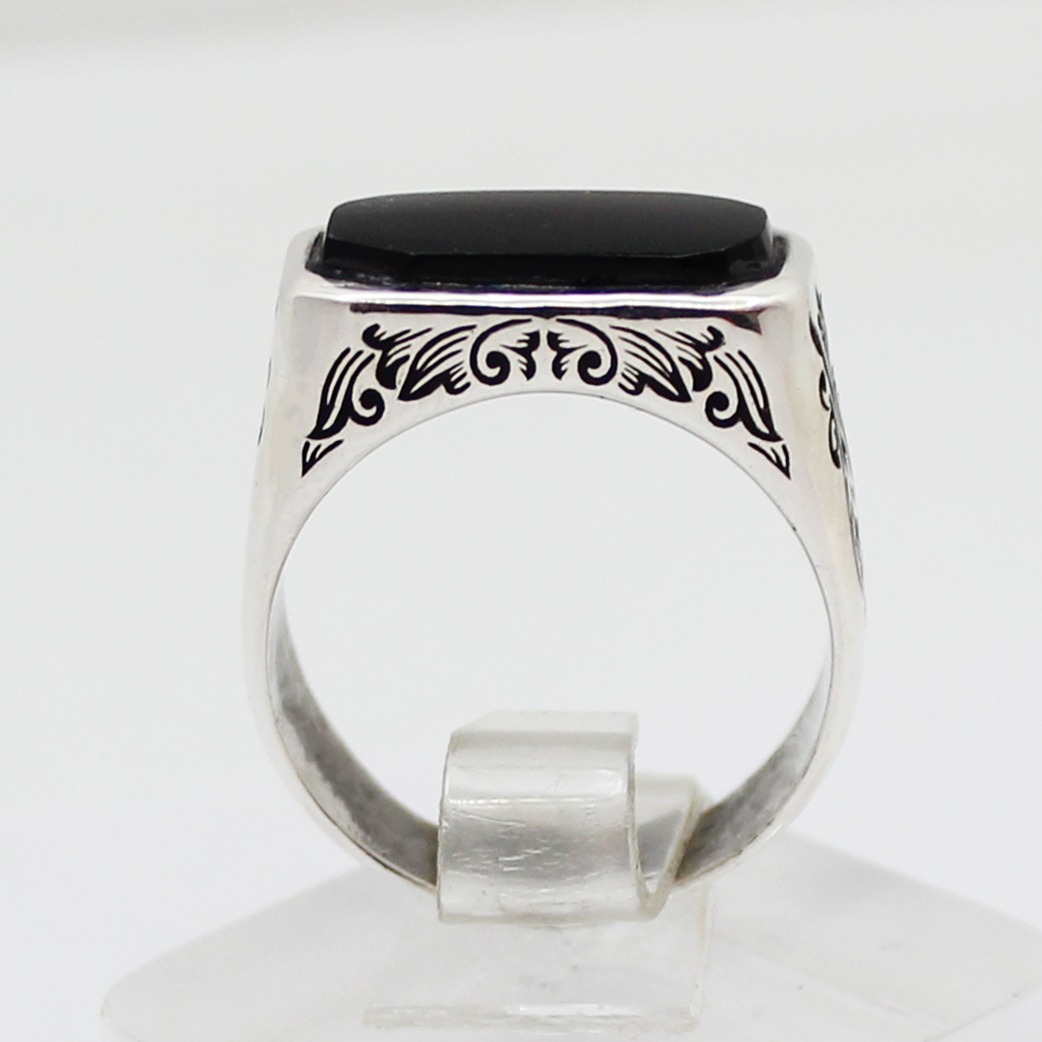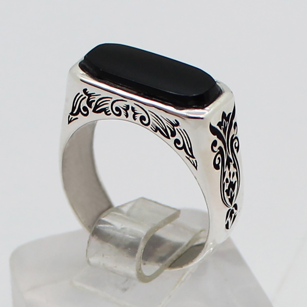 انگشتر نقره 925با طرح قلم زنی و سنگ عقیق اصلی یک کار شیک اسپرت